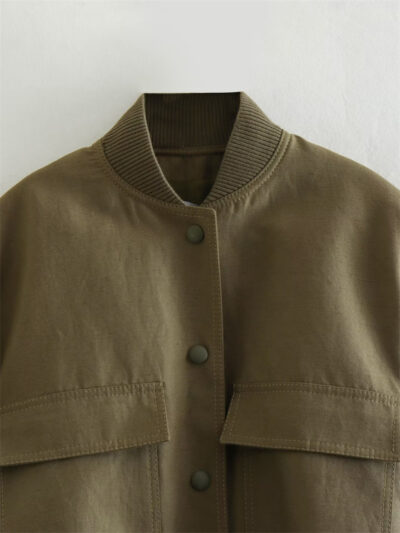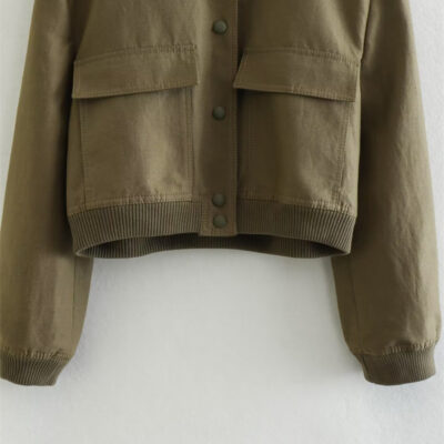 23 mùa xuân thời trang mới áo khoác cổ đứng màu trơn đơn giản nữ cá tính xu hướng gió nhiều túi ngực áo khoác