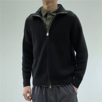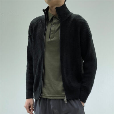 23 Mùa Xuân Và Mùa Thu Mới Nam Kích Thước Lớn Thời Trang Đơn Giản Thể Thao Dệt Kim Cổ Áo Len Dây Kéo Áo Khoác Cardigan