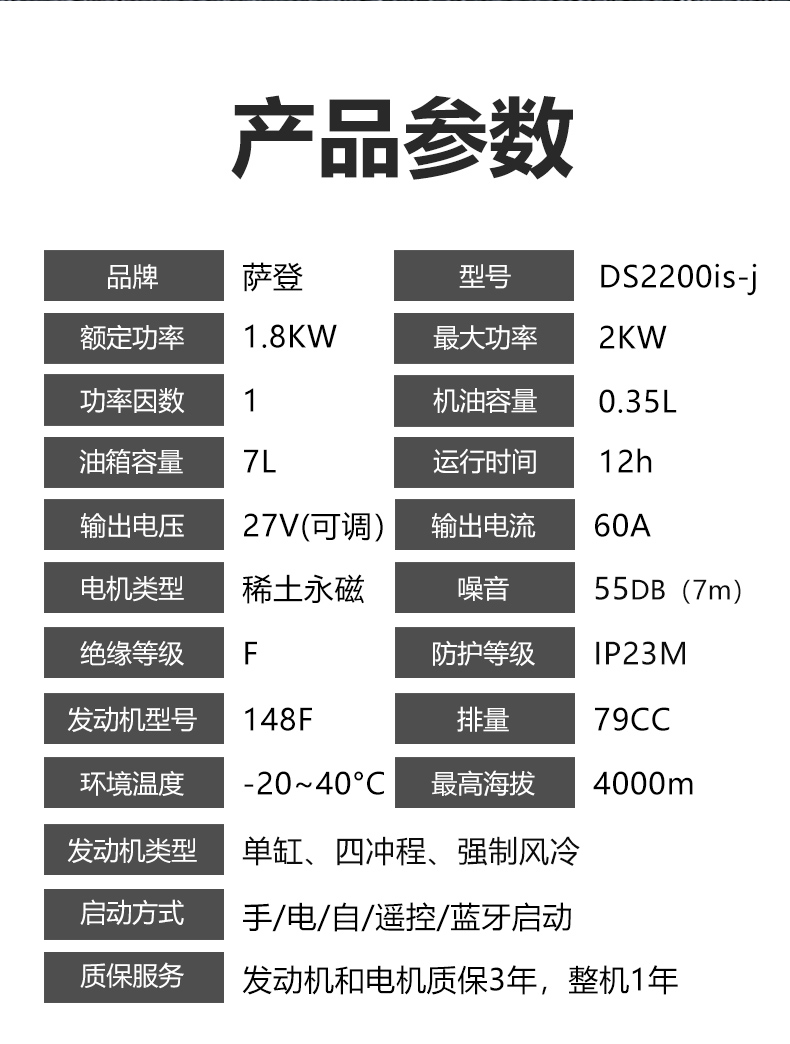 24V Saden bluetooth tự động khởi động dừng đỗ máy điều hòa không khí im lặng biến tần DC 2000W máy phát điện chạy xăng cố định
