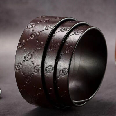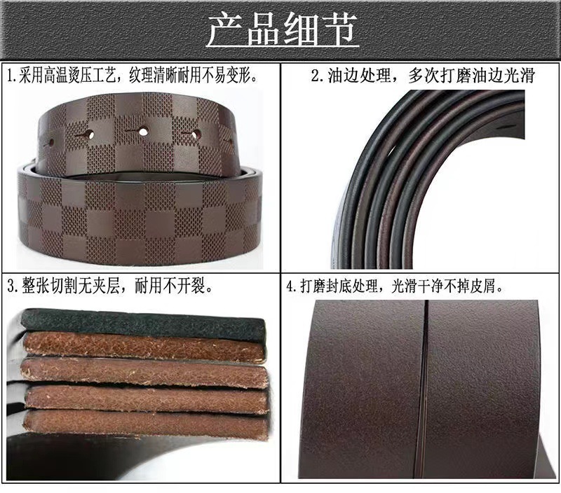3.8Cm Không Đầu Thắt Lưng Nam Dập Nổi Đấm Kẻ Sọc Thắt Lưng Không Đầu Da Mịn Khóa H Cơ Thể Da Bò Nguyên Chất