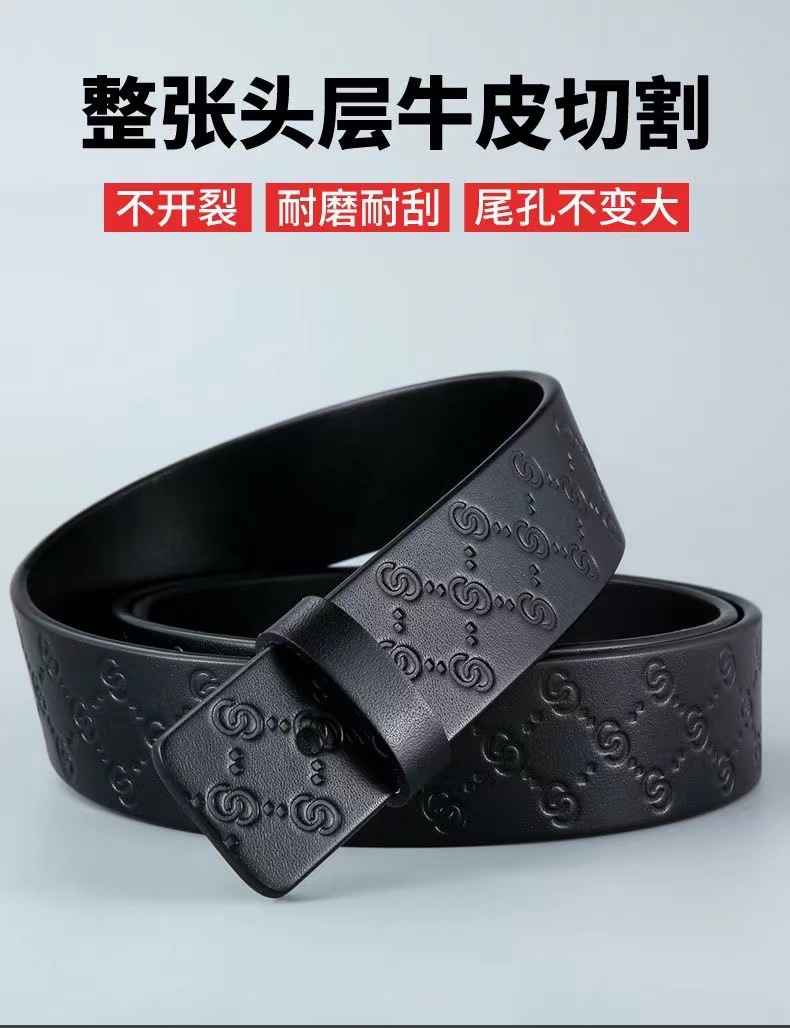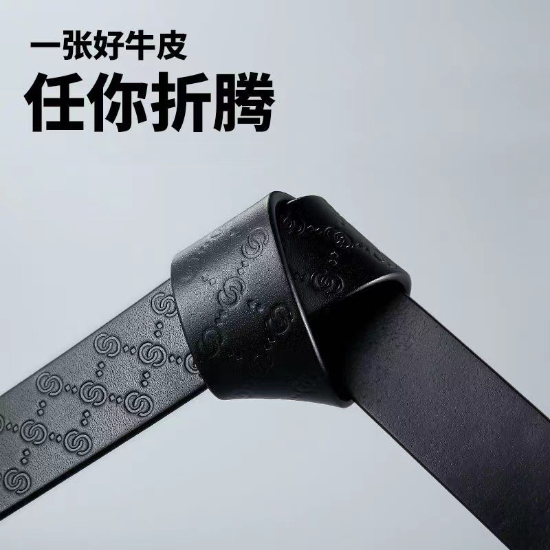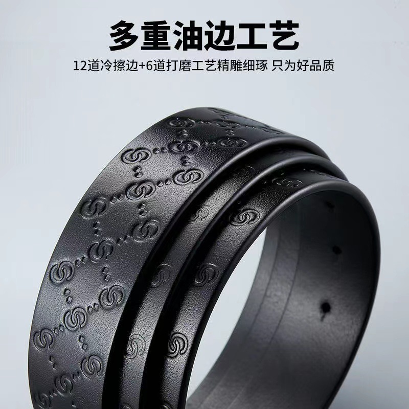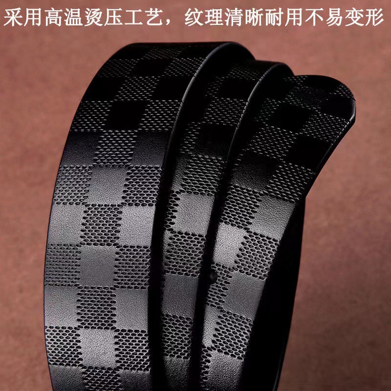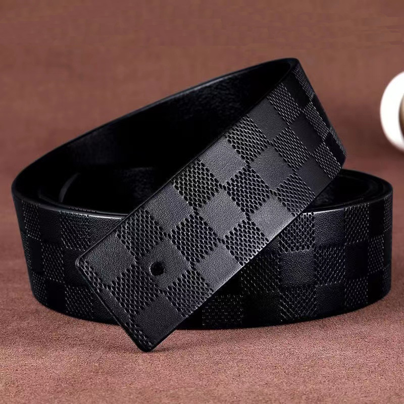 3.8Cm Không Đầu Thắt Lưng Nam Dập Nổi Đấm Kẻ Sọc Thắt Lưng Không Đầu Da Mịn Khóa H Cơ Thể Da Bò Nguyên Chất
