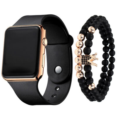 3 Cái/bộ Thời Trang Nam Đơn Giản LED Đồng Hồ Điện Tử + Vòng Tay Điểm Đồng Hồ Đeo Tay