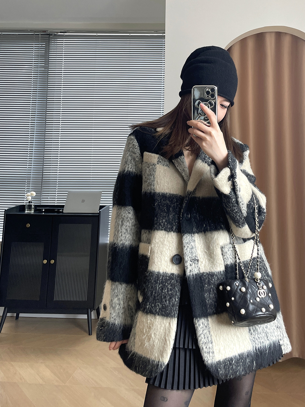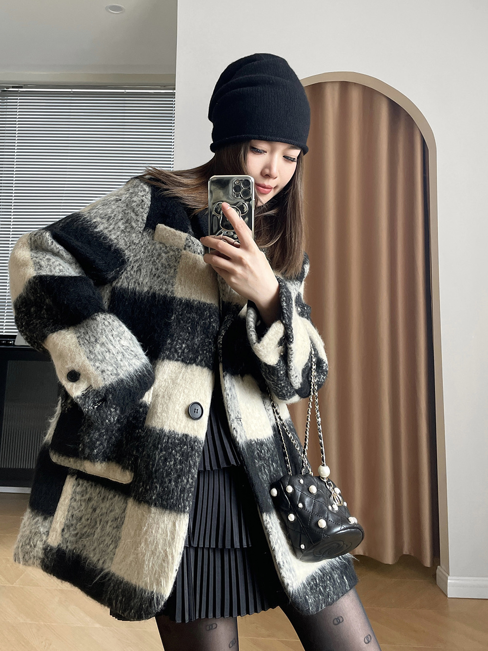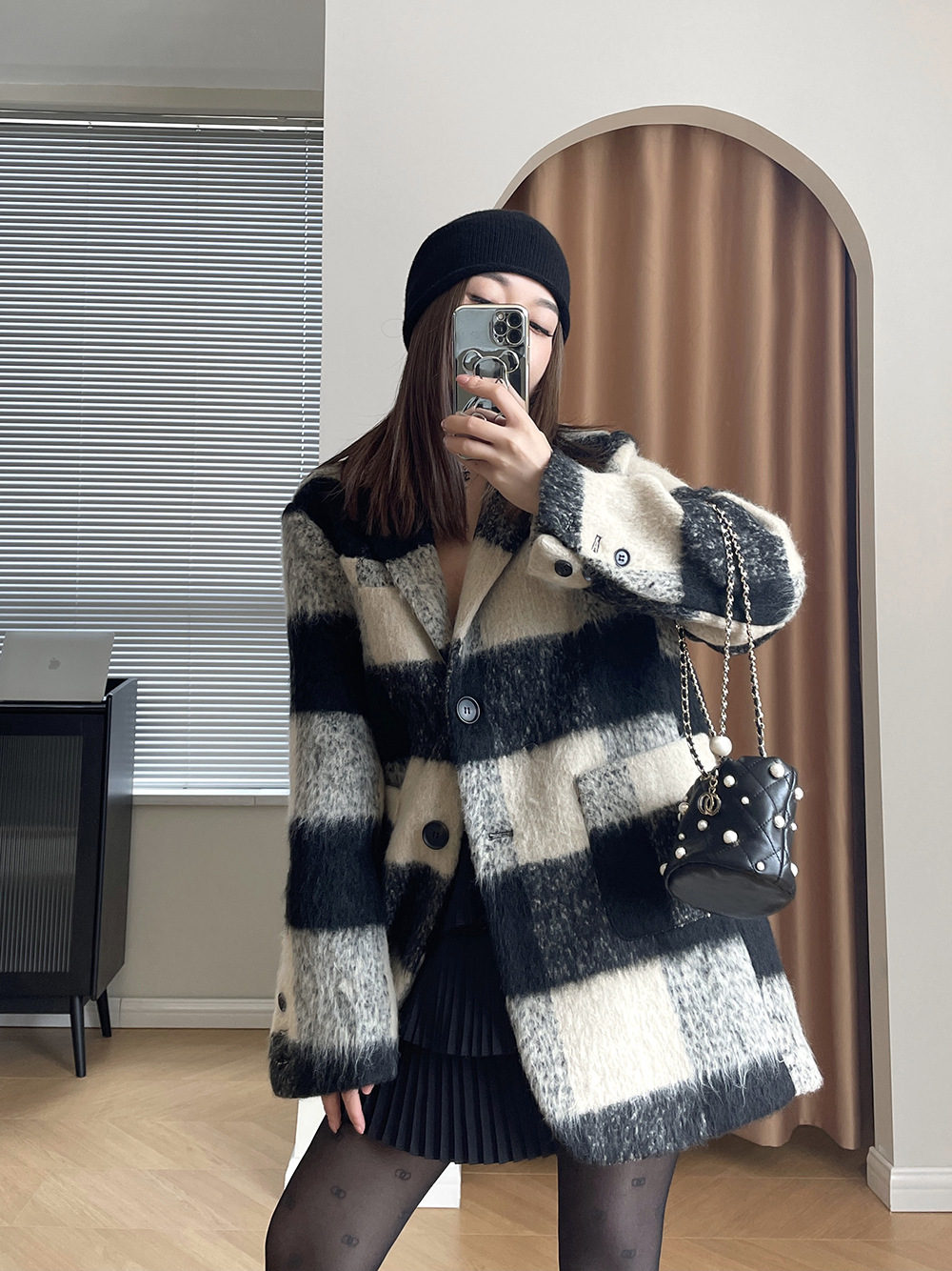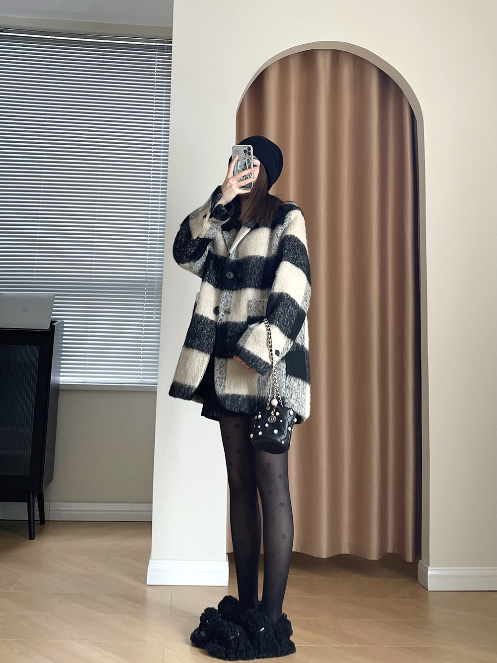 30 Áo khoác len kẻ sọc nữ mùa đông 2023 phong cách Hàn Quốc mới thời trang dáng rộng thường phù hợp với áo khoác ngắn 8233