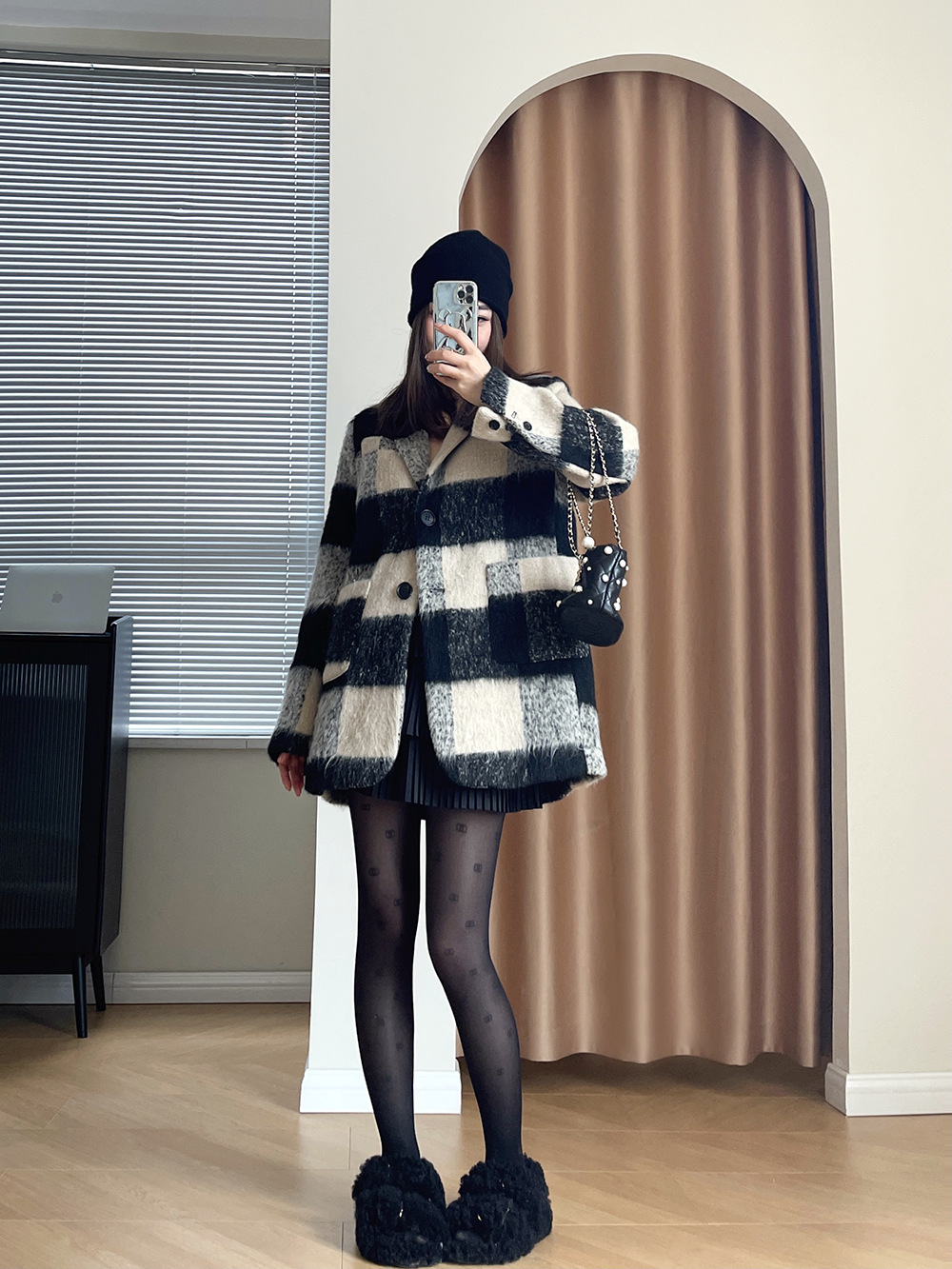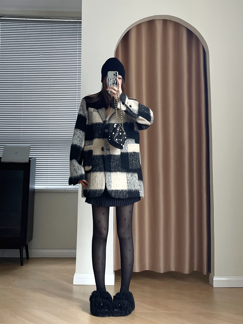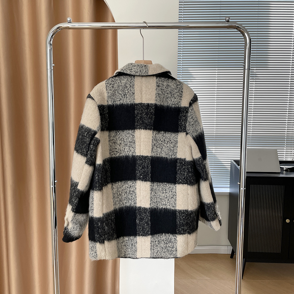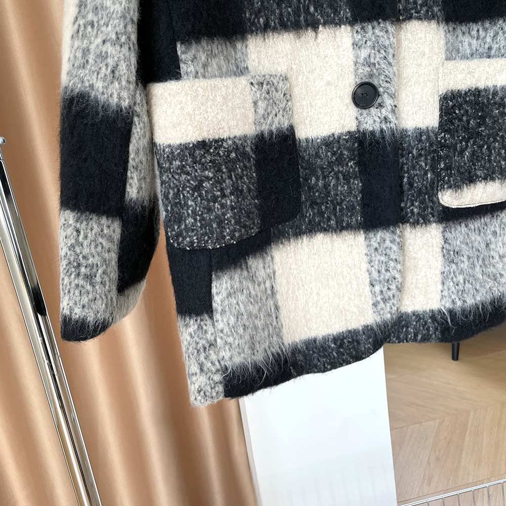 30 Áo khoác len kẻ sọc nữ mùa đông 2023 phong cách Hàn Quốc mới thời trang dáng rộng thường phù hợp với áo khoác ngắn 8233