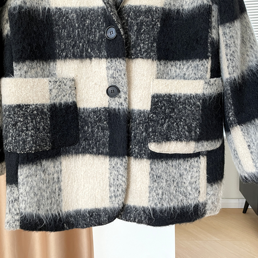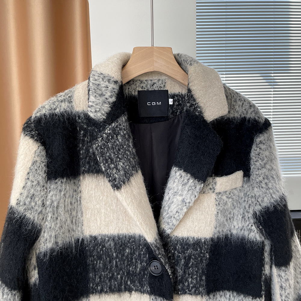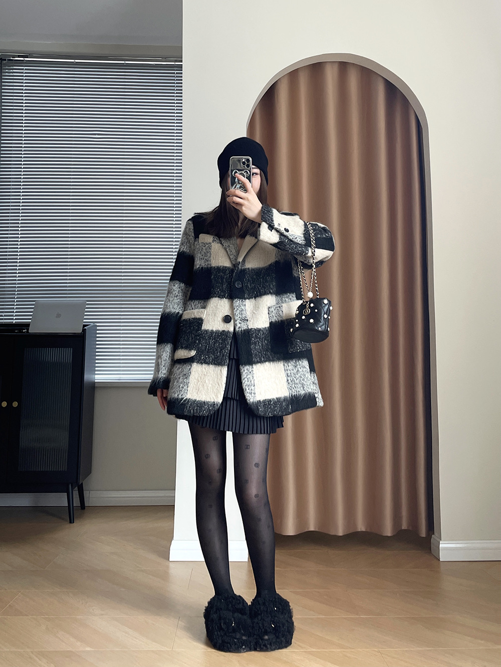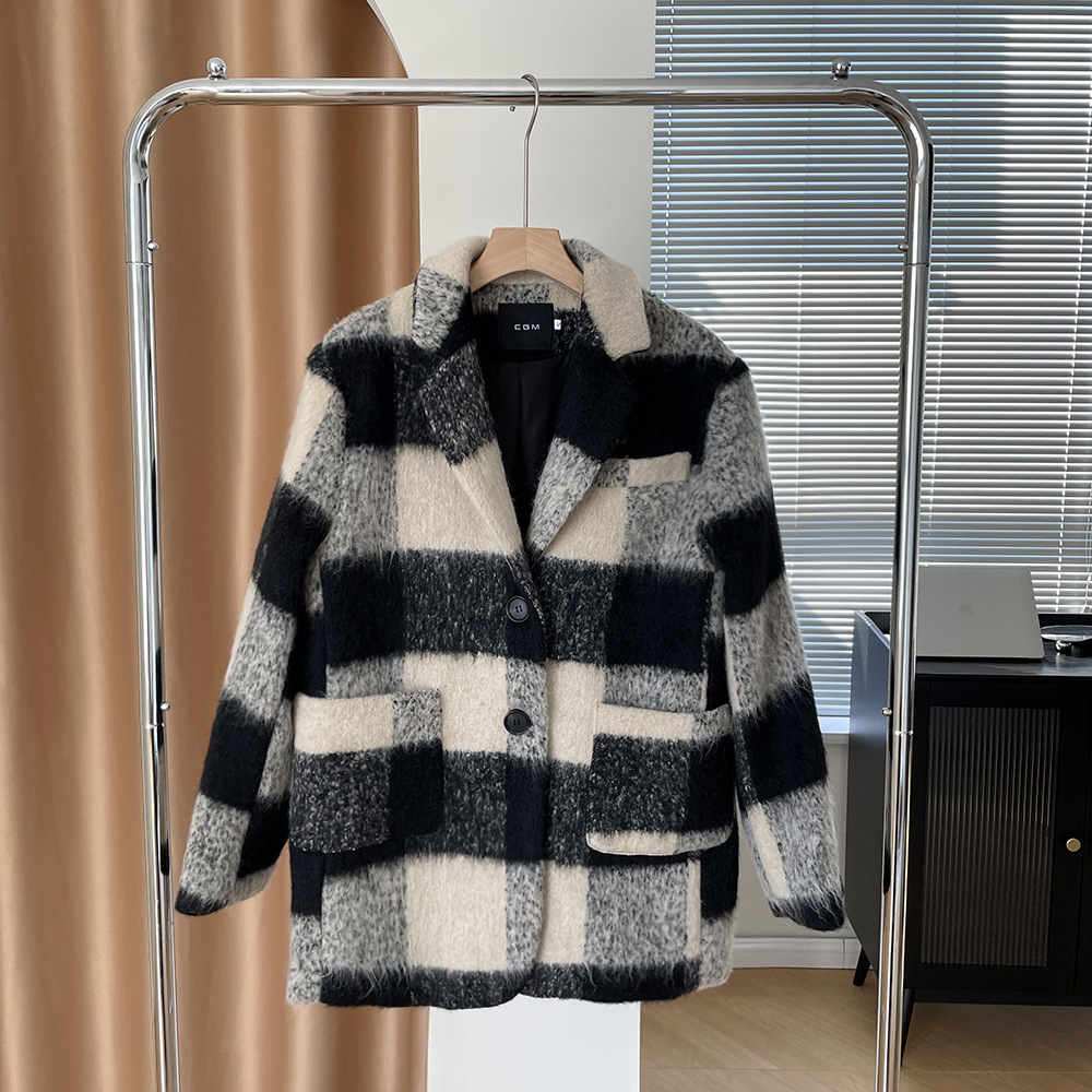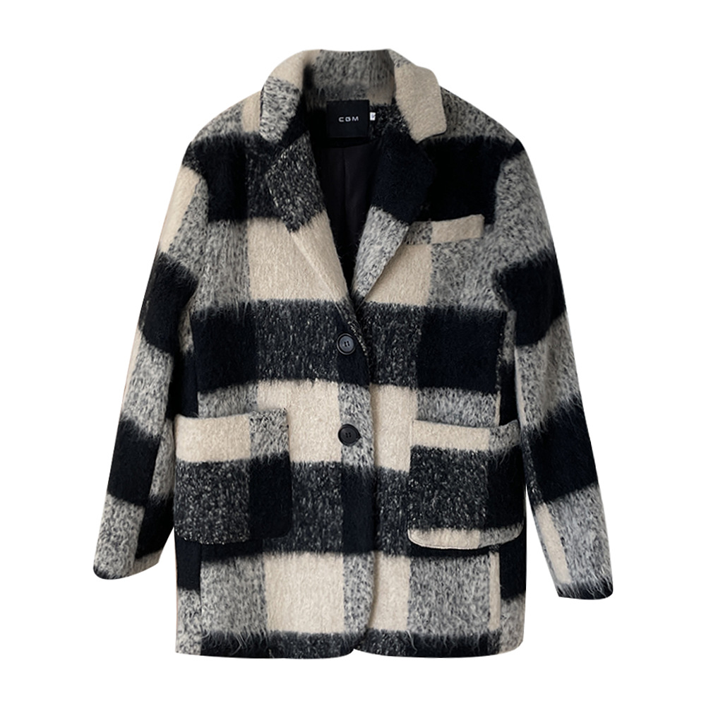30 Áo khoác len kẻ sọc nữ mùa đông 2023 phong cách Hàn Quốc mới thời trang dáng rộng thường phù hợp với áo khoác ngắn 8233