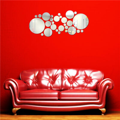 30 vòng sáng tạo ba chiều tự dính dán tường acrylic hình tròn hình tròn trang trí DIY kết hợp gương dán hình tròn lớn 15cm