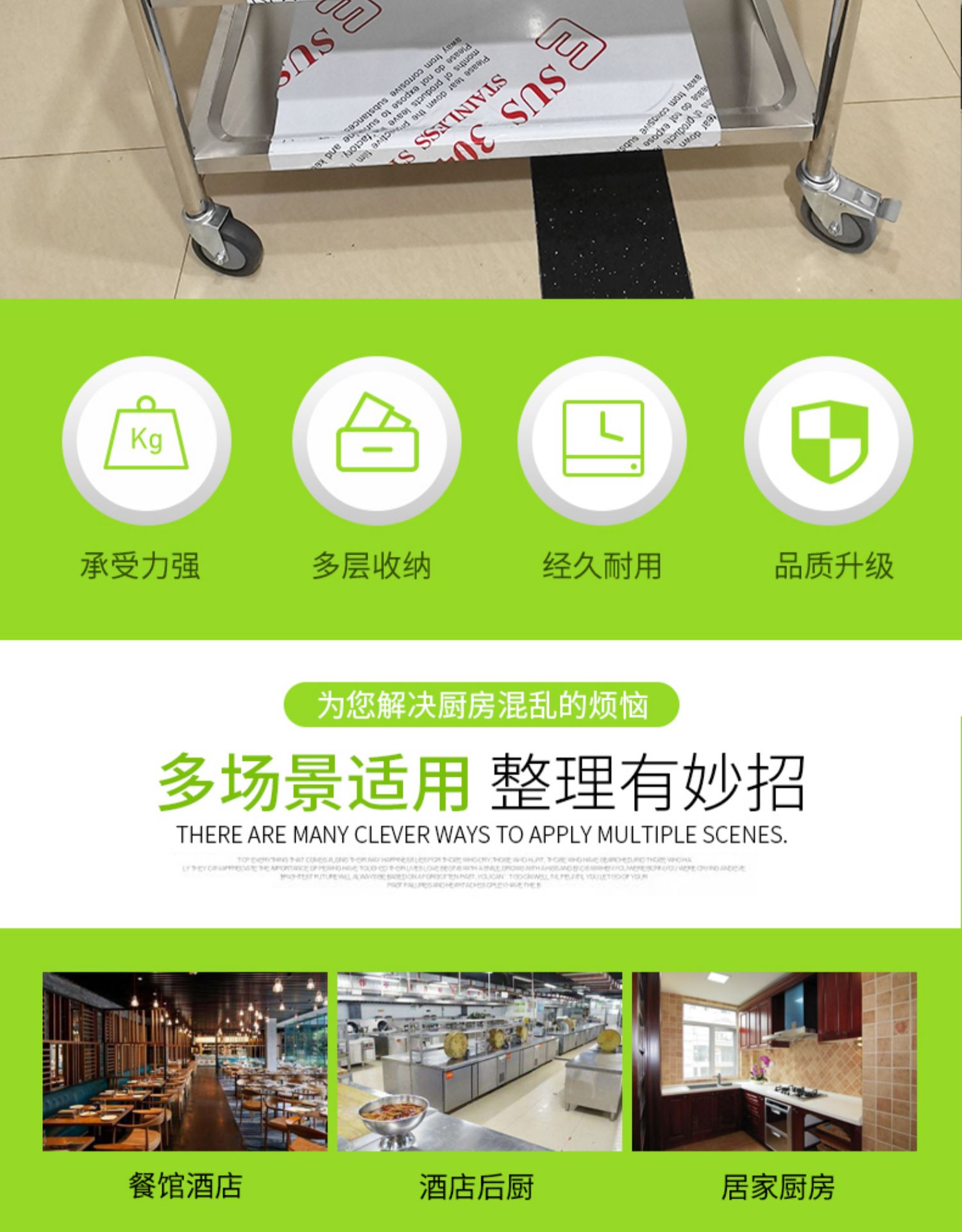 304 dày thép không gỉ xe ăn khách sạn nhà hàng lẩu nhà hàng nhà hàng nhà hàng xe đẩy đôi ba lớp giao thức ăn và xe tô