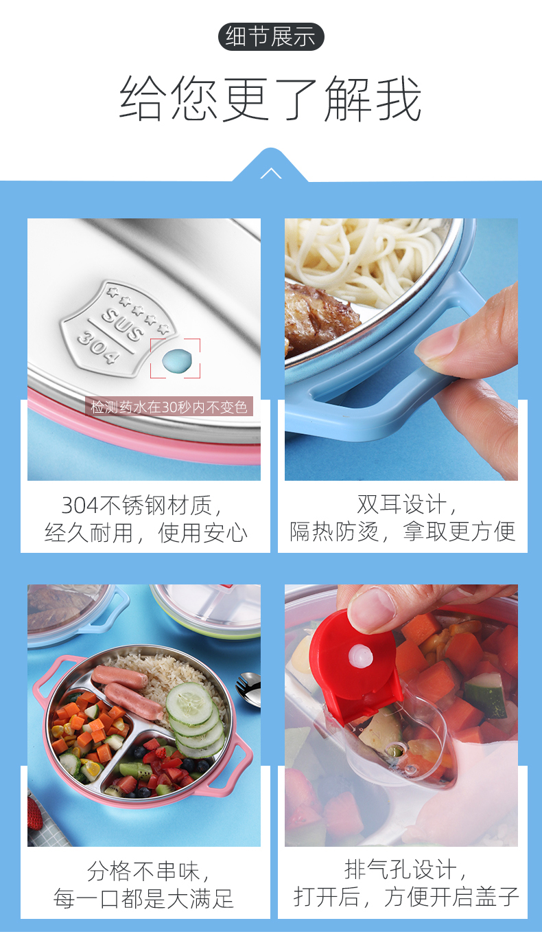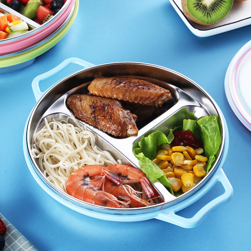 304 đĩa ăn chia cho trẻ em tại nhà bằng thép không gỉ chống rơi cho bé tách cơm ba lưới bát cơm mẫu giáo bộ đồ ăn N