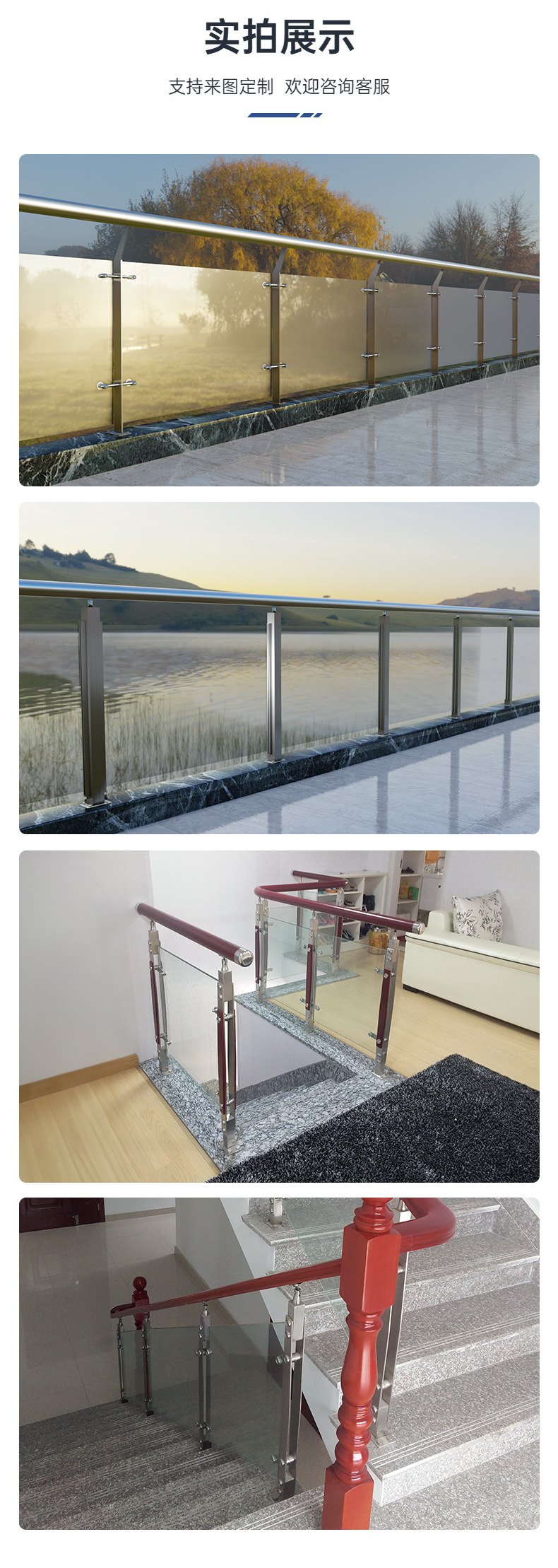 304 thép không gỉ ống vuông khe cắm thẻ lan can cột cầu thang lan can lan can trung tâm mua sắm nhà sản xuất lan can kính cường lực