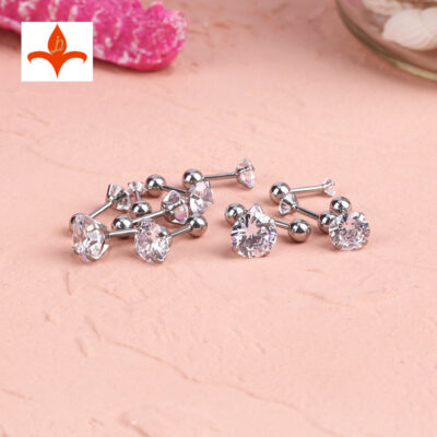 316L thép không gỉ zircon tròn vuông hình trái tim bông tai ngôi sao năm cánh bông tai zircon bông tai xuyên trang sức bông tai có thể được thiết lập