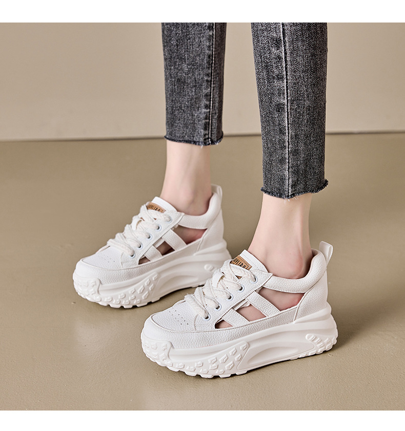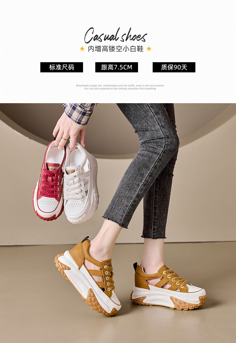 3233 Mùa Hè Giày Rỗng Giày Nữ Đế Dày Tăng Chiều Cao Giày Bố Giày Nữ Phiên Bản Hàn Quốc Giày Học Sinh Giày Trắng Nhỏ Cho Nữ