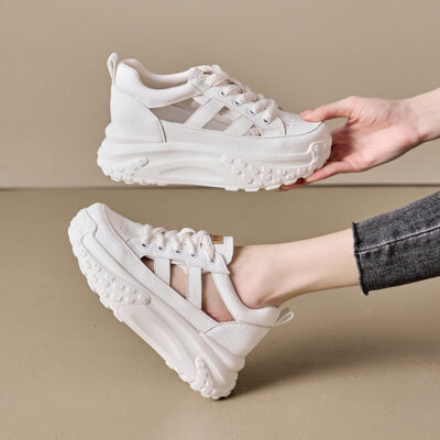 3233 Mùa Hè Giày Rỗng Giày Nữ Đế Dày Tăng Chiều Cao Giày Bố Giày Nữ Phiên Bản Hàn Quốc Giày Học Sinh Giày Trắng Nhỏ Cho Nữ