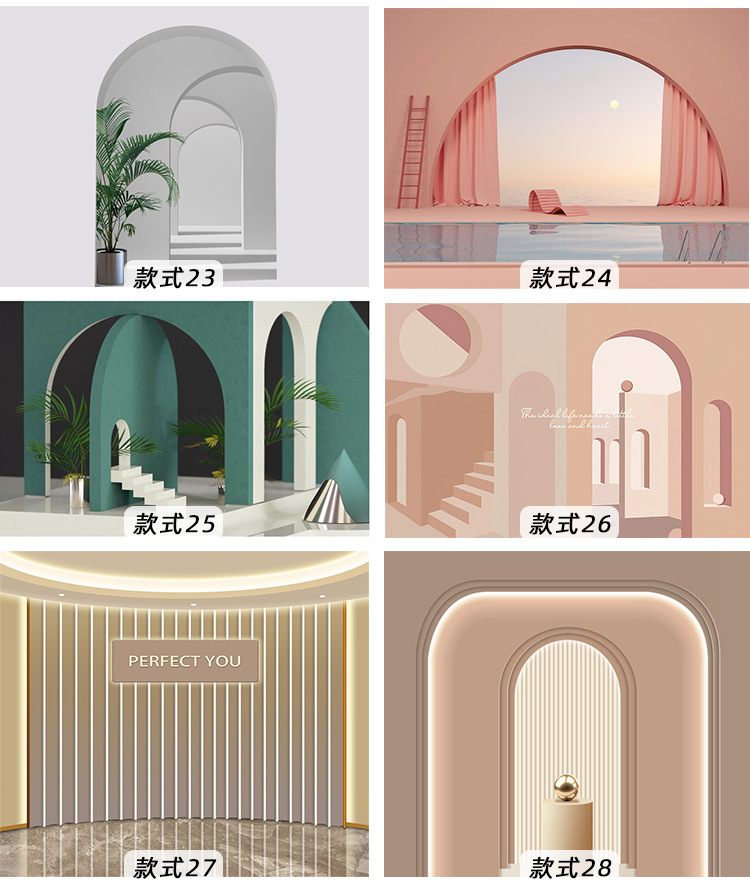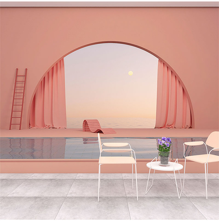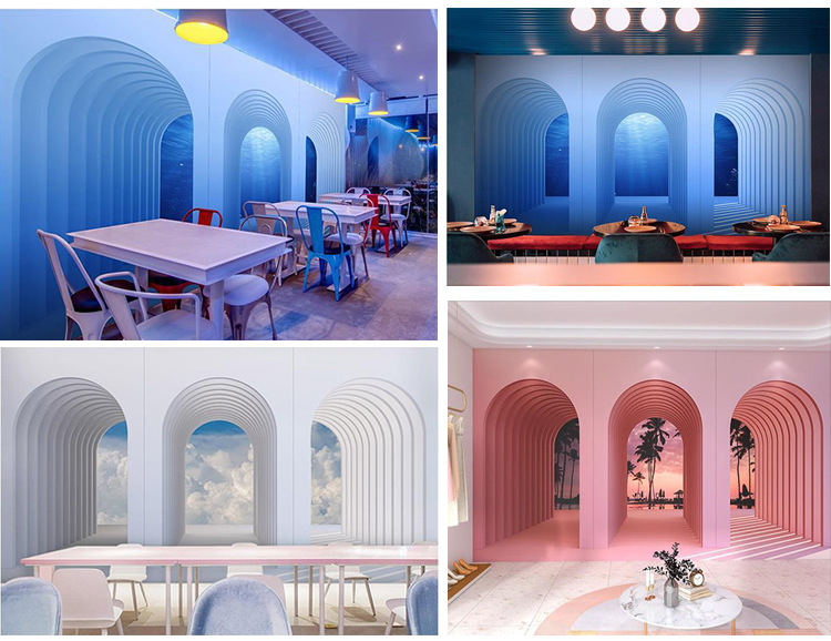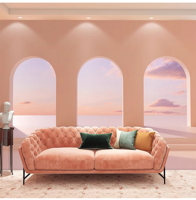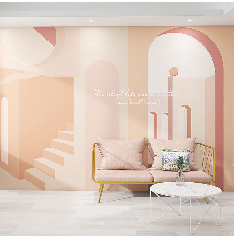 3D Bắc Âu Hình Vòm Giấy Dán Tường Đơn Giản Lưới Đỏ Cửa Hàng Quần Áo Phòng Khách Nền Treo Tường Hình Ảnh Mở Rộng Bức Tranh Tường