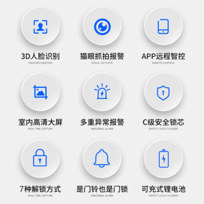 猫眼款:指纹、密码、IC卡、钥匙、小程序临时密码,优智云家APP;