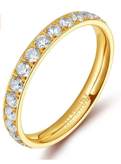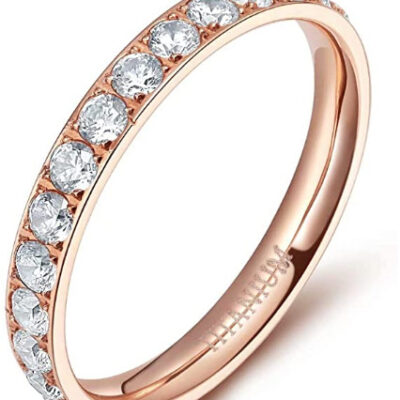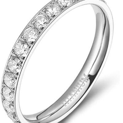 3Mm Nữ Thép Titan Hợp Kim Thép Không Gỉ Nhẫn Đính Đá Cubic Zirconia Vĩnh Cửu Nhẫn Cưới