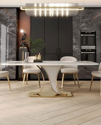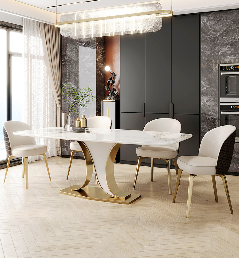 Bàn ăn bằng đá cẩm thạch sang trọng nhẹ Bàn ăn gia đình hình chữ nhật 6 người căn hộ lớn nhà thiết kế bàn ăn bằng thép không gỉ và ghế kết hợp – Bàn ăn nhập khẩu cao cấp