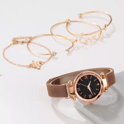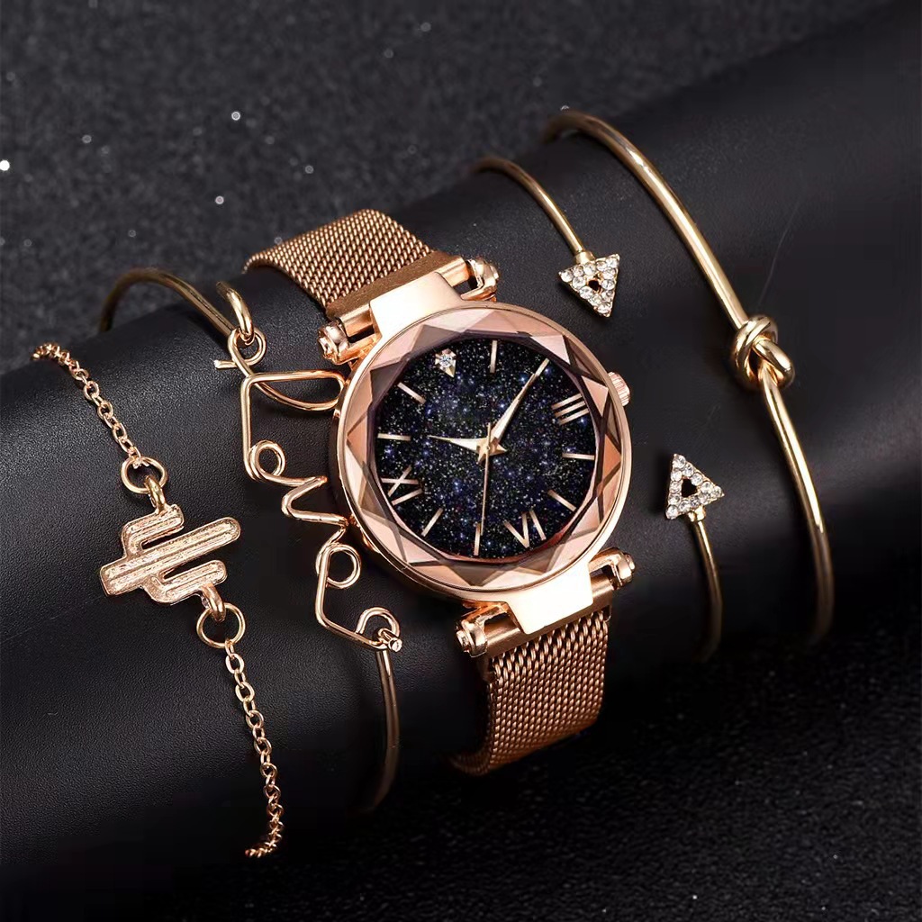 5 ps/bộ set ngoại thương xu hướng thời trang phụ nữ sinh viên đồng hồ nam châm vòng đeo tay vòng đeo tay thạch anh không thấm nước