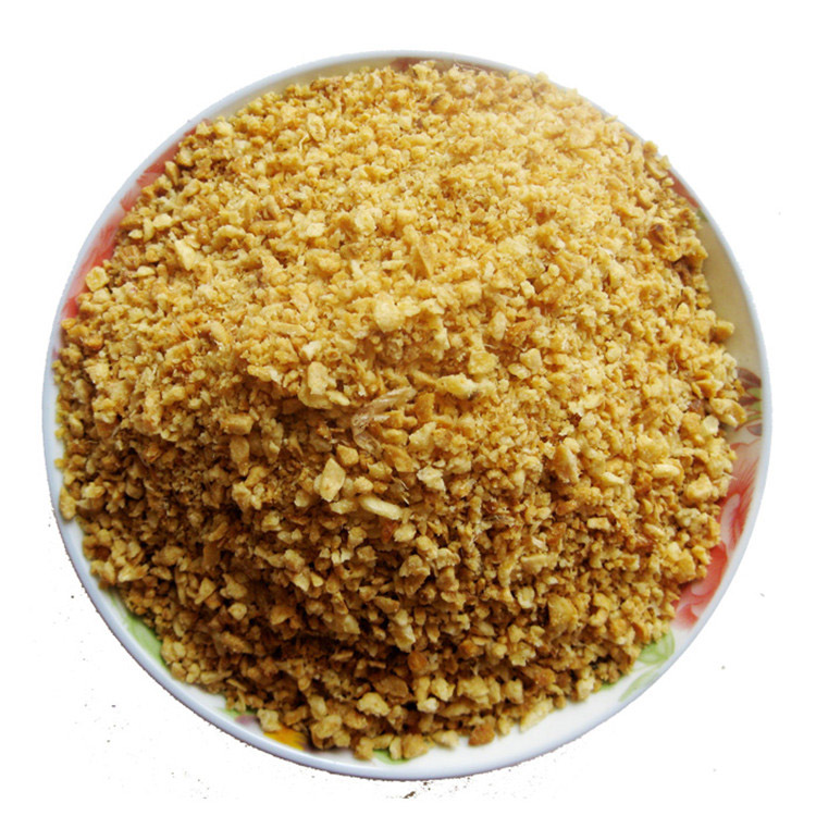 蒜蓉酥酥脆爽口、鲜香可人、蒜香味浓、色泽均匀。客家腌面,腌粉,调肉类,海鲜粥,拉面,牛肉丸,炖鲁肉饭,烧油饭,煮汤面时使用, 各种面食、粥品、蒸蛋、热炒或是凉拌等等, 都可撒上一些, 香酥的蒜末可使人胃口大开。亦可用于避风塘炒虾,炒蟹等。受季节蒜头等影响,每批货颗粒大小会稍些区别!