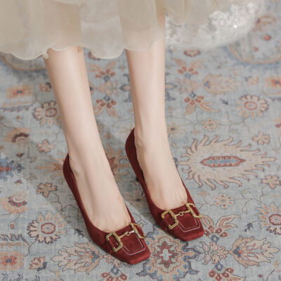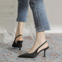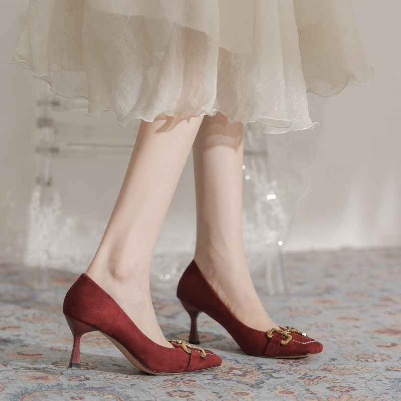 6246-6 giày cao gót nữ giày cao gót 2023 da lộn màu đen khí chất cổ điển Pháp giày đơn giày nữ cao cấp