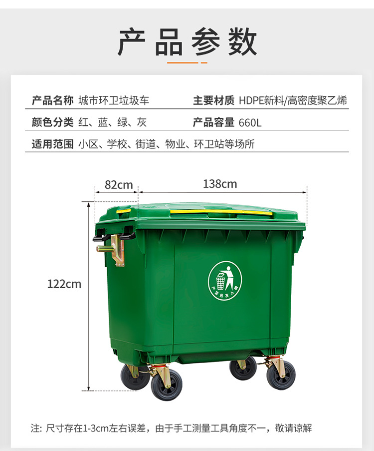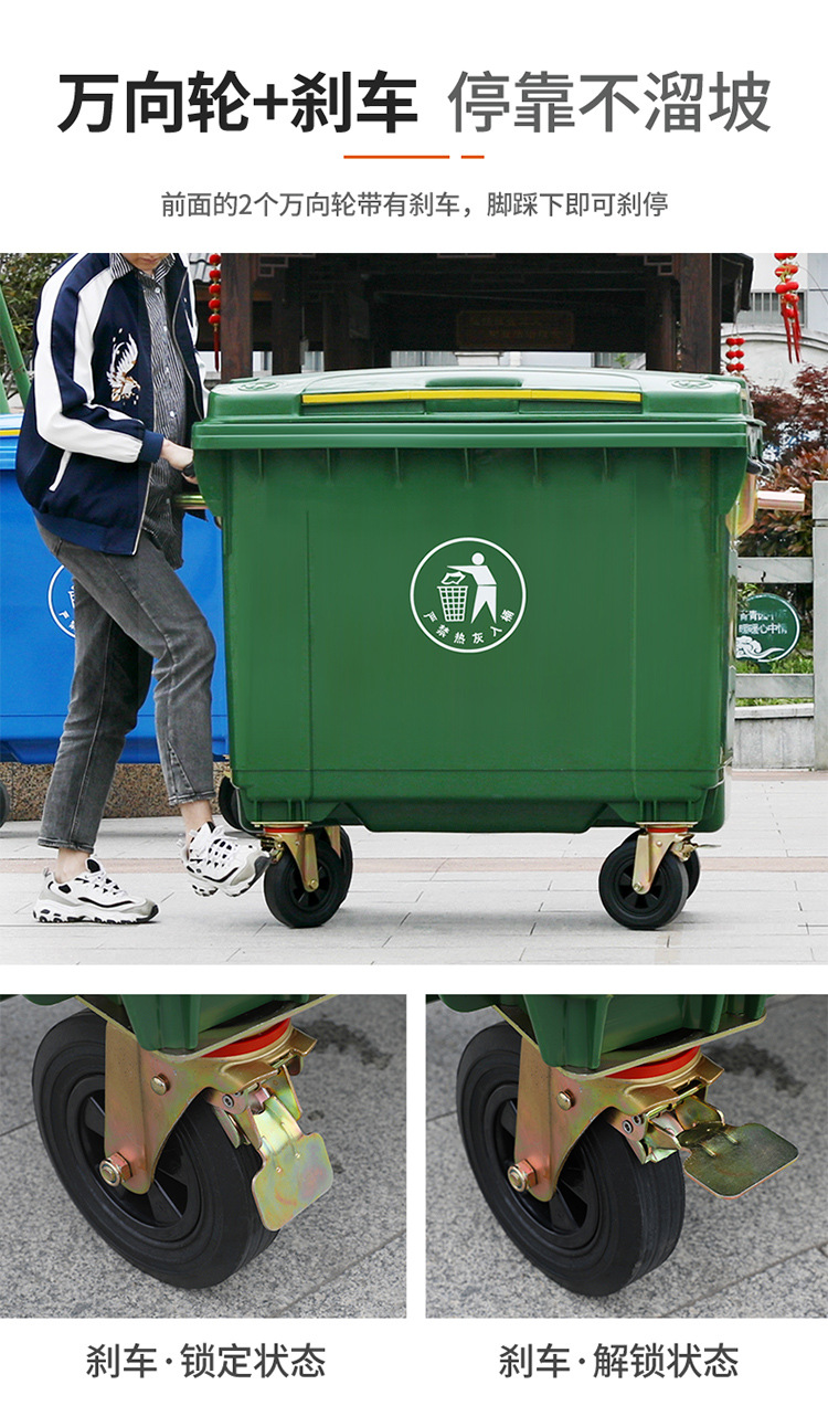 660 Thùng rác ngoài trời lớn có thể vận chuyển và làm sạch thương mại lớn Xe đẩy bộ sưu tập vệ sinh công suất lớn là lựa chọn lý tưởng cho không gian công cộng, sân vườn hoặc khu đô thị. Sản phẩm giúp nâng cao hình ảnh chuyên nghiệp và sạch đẹp cho môi trường sống.