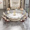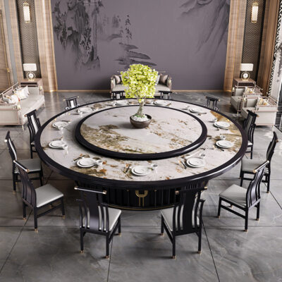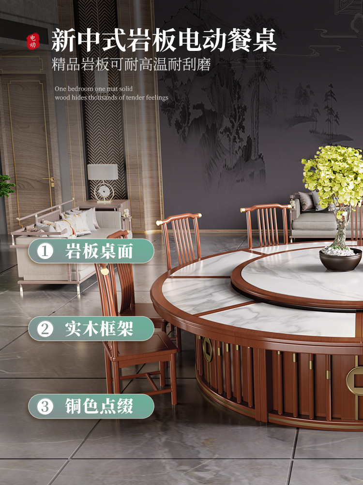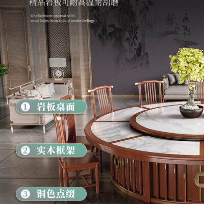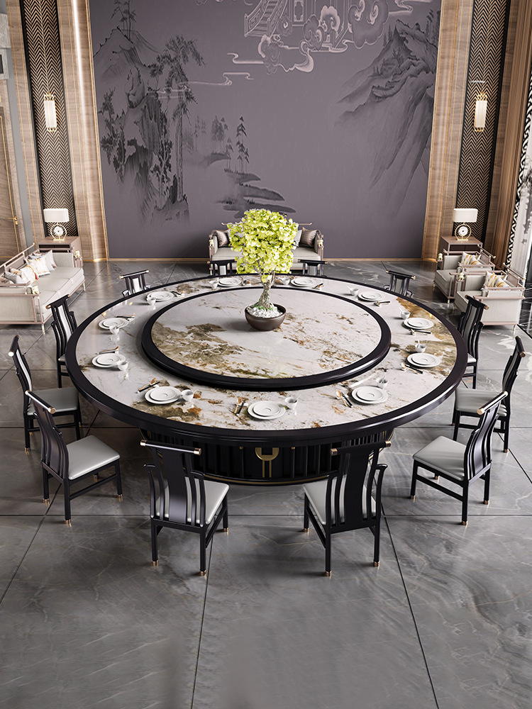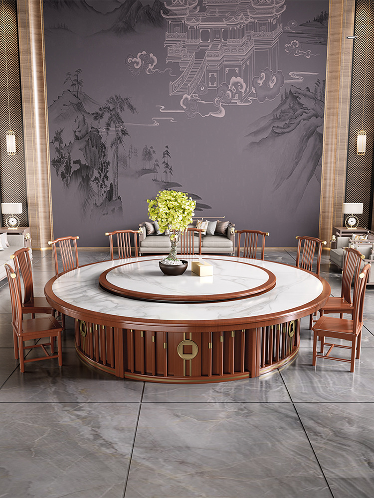 6666 bàn ăn gỗ nguyên khối khách sạn xoay tự động tròn bàn tròn lớn kiểu Trung Quốc mới tấm đá 3m bàn ghế ăn kiểu Trung Quốc câu lạc bộ