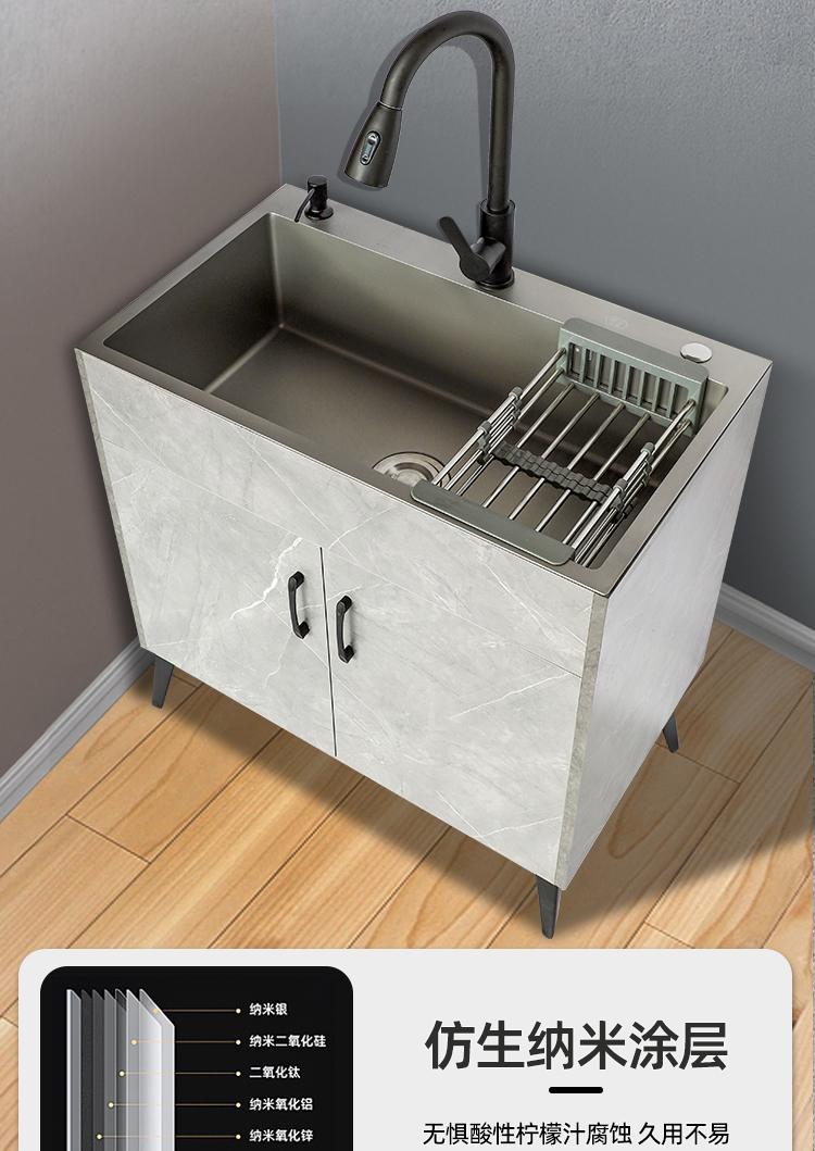 7WLO bồn rửa nhà bếp tích hợp tủ lớn đơn khe cắm bồn rửa chén inox hộ gia đình tầng-đứng tủ nước là thiết bị nằm trong danh mục Đồ nhà hàng > Chậu rửa, được thiết kế chuyên dụng cho các nhà hàng cần sự tiện nghi và chuyên nghiệp.