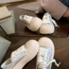 8829-1 phiên bản Hàn Quốc của giày cao gót kẻ sọc miệng nông bên rỗng dây chuyền kim loại chuỗi ngọc trai chuỗi rỗng giày siêu cao gót