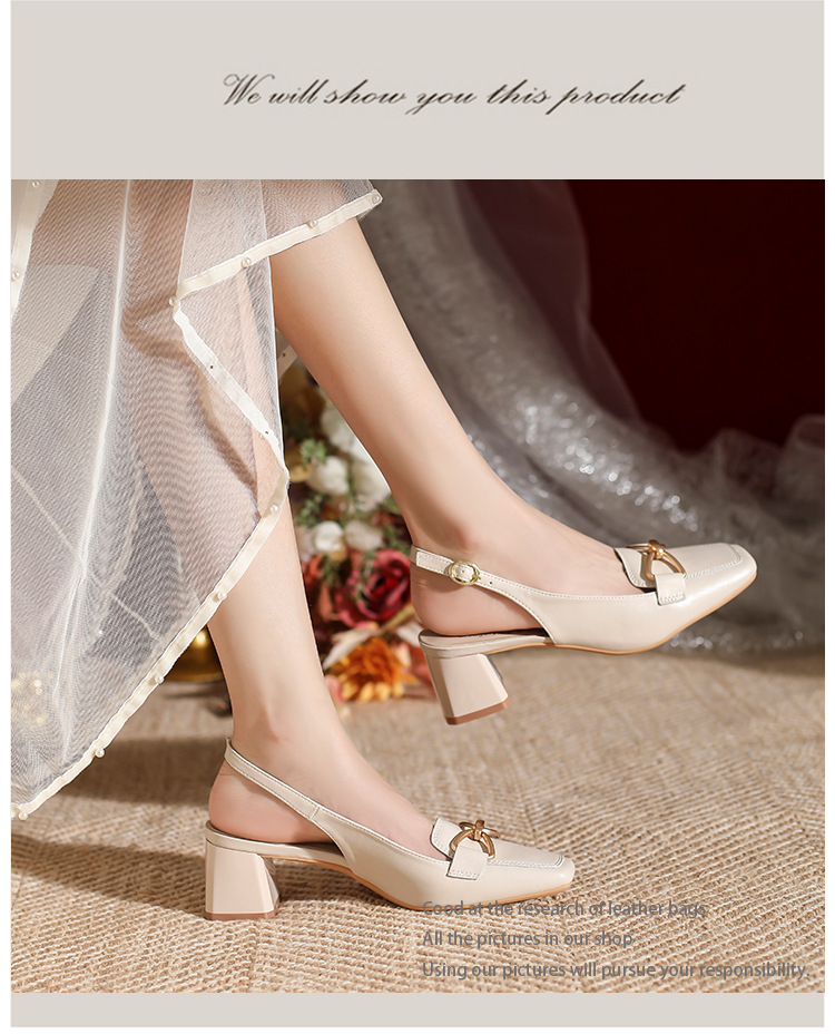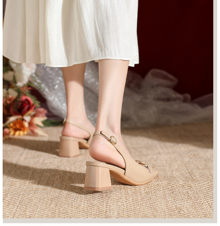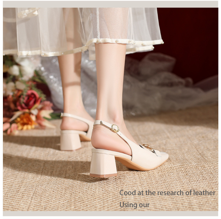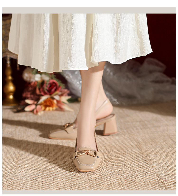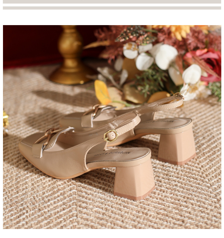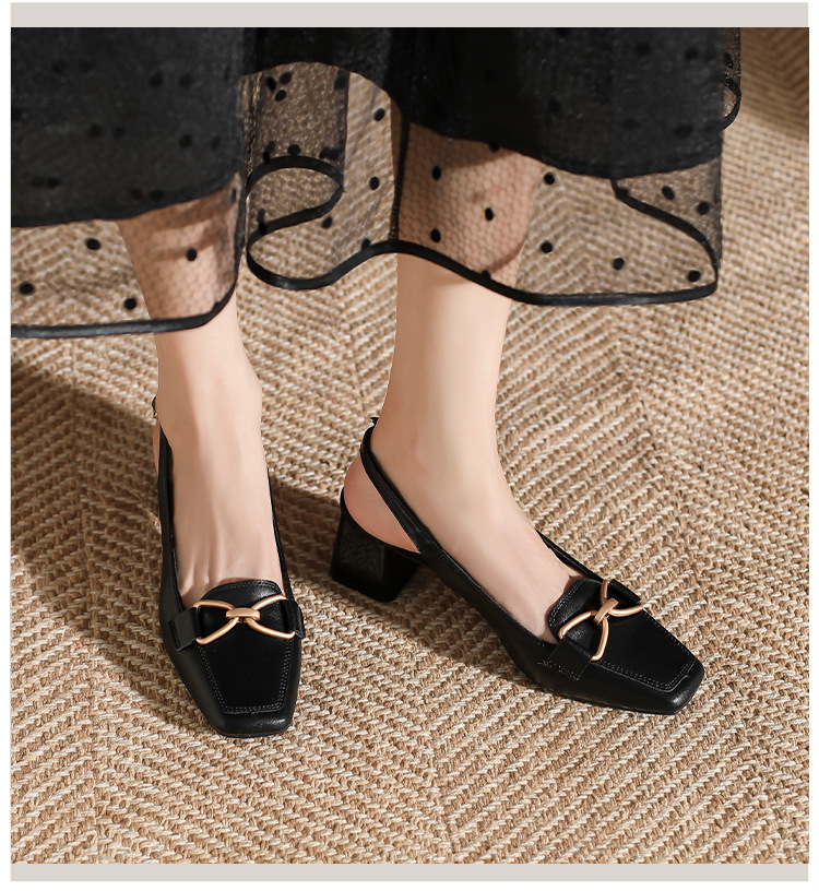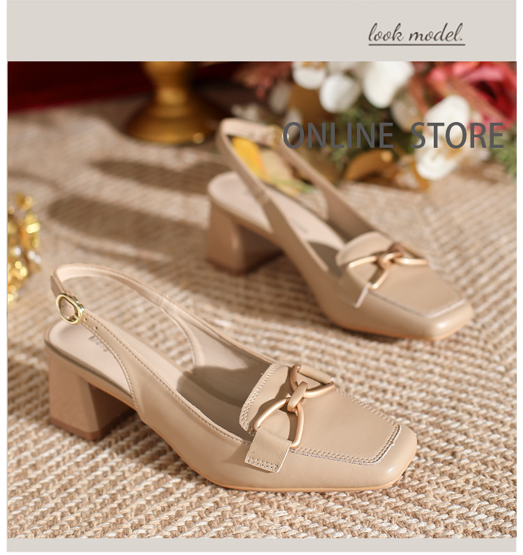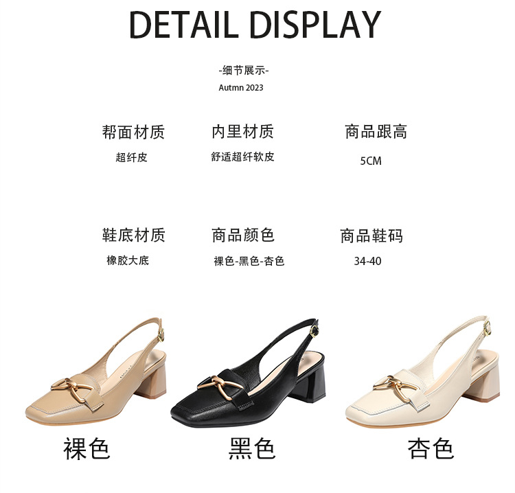 888-1 Da Dày Gót Bao Đầu Xăng Đan Nữ Mùa Hè 2023 Mới Đa Năng Hở Lưng Vuông Nhỏ Mũi Dày Gót Nữ