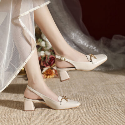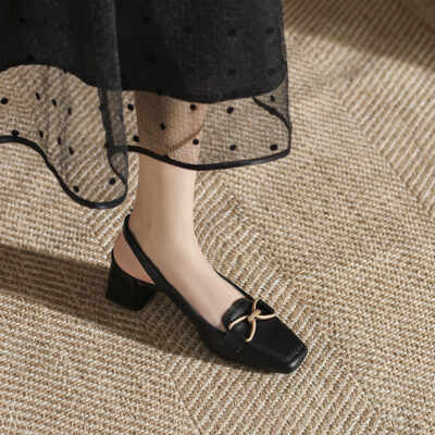 888-1 Da Dày Gót Bao Đầu Xăng Đan Nữ Mùa Hè 2023 Mới Đa Năng Hở Lưng Vuông Nhỏ Mũi Dày Gót Nữ