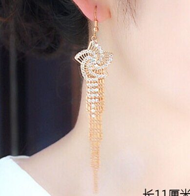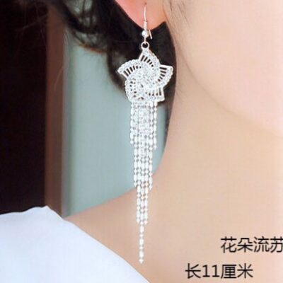 9 Vương Miện Trang Sức Hàn Quốc Phóng Đại Tua Hoa Bông Tai Bông Tai Dài Thêm Kim Cương Giả Tai Dây Bông Tai Sỉ Nữ