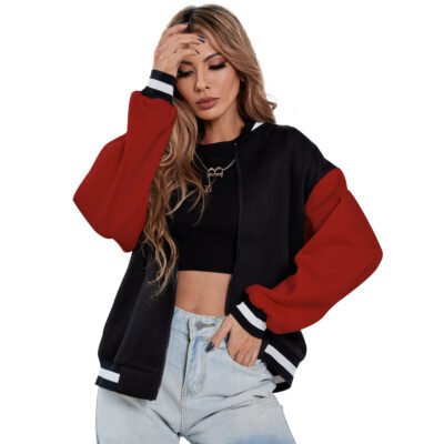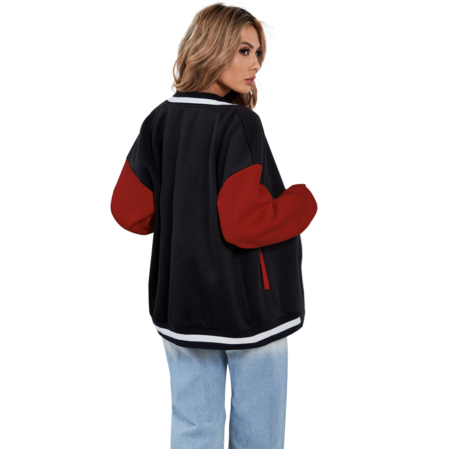 90867#Amazon xuyên biên giới phụ nữ châu Âu và châu Mỹ INS thời trang kết hợp màu sắc giản dị in áo khoác dài tay áo khoác hợp thời trang
