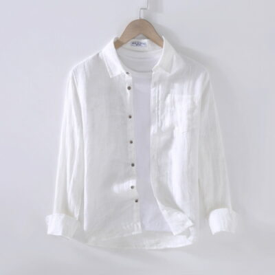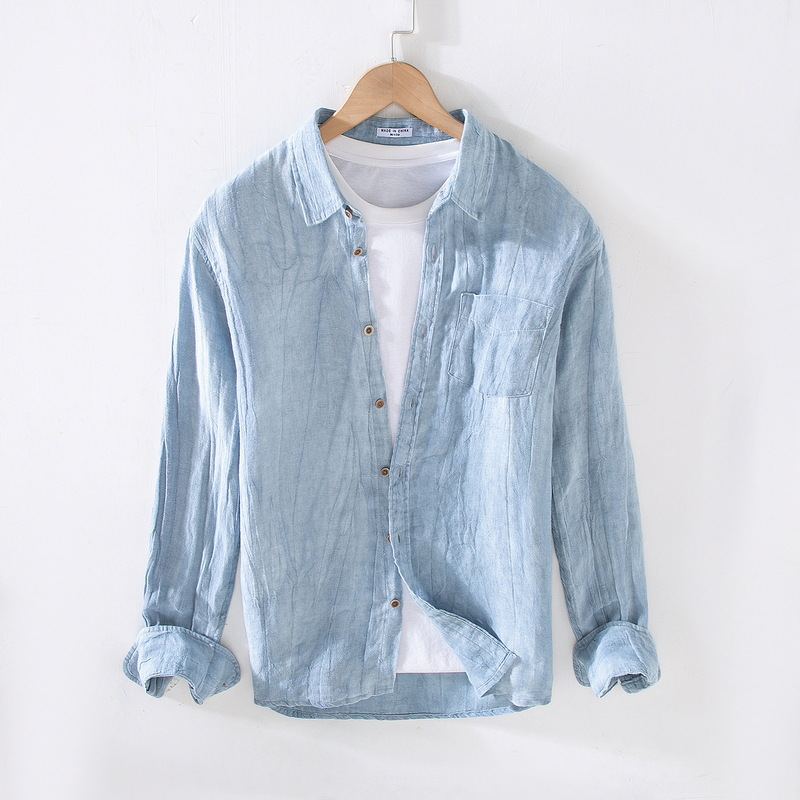914 mùa xuân và mùa hè mới của nam giới vải lanh dài tay áo sơ mi nam thanh niên rời cũ retro nhàu nát áo sơ mi cổ vuông