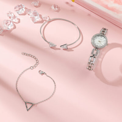 - 名称:厂家直销抖音 直播 小红书 女士小表盘数字手链手表 几何手镯套装
