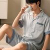 ABXKITTY lụa dâu tằm pijama nam ngắn tay phương thức rộng thoáng khí phù hợp với đồ mặc nhà có thể mặc bên ngoài vào mùa hè