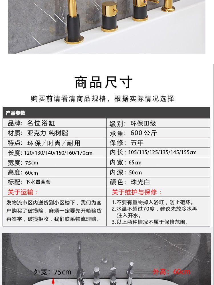 Acrylic hộ gia đình cách nhiệt hai lớp không cần lắp đặt căn hộ nhỏ homestay độc lập Bồn tắm khách sạn có thể tháo rời chậu vệ sinh