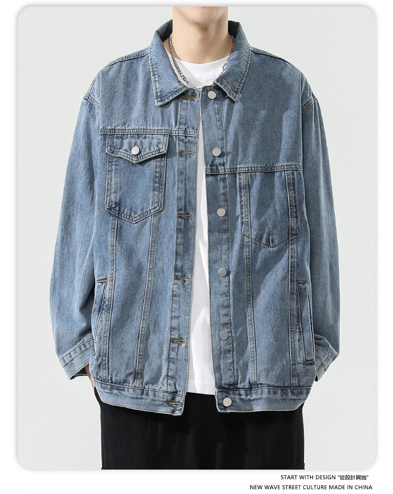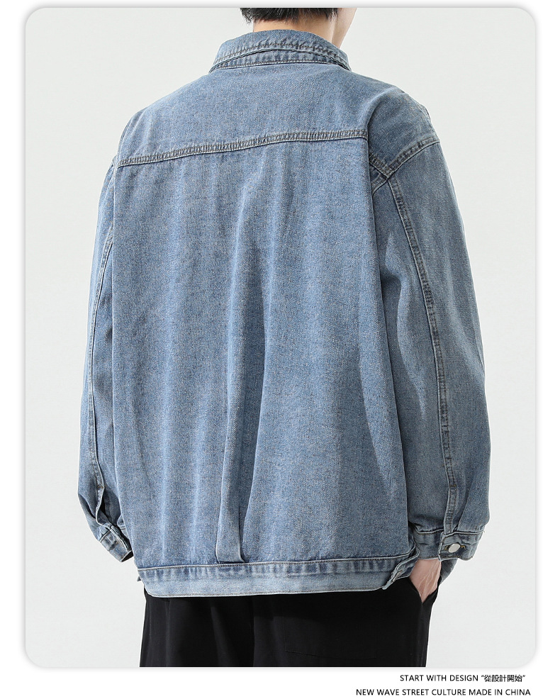 ACU Quần Áo Nam Mùa Xuân 2023 Sản Phẩm Mới Retro Đồng Màu Làm Cũ Đã Giặt Áo Khoác Denim Bảo Hộ Lao Động Áo Khoác Rộng Nam