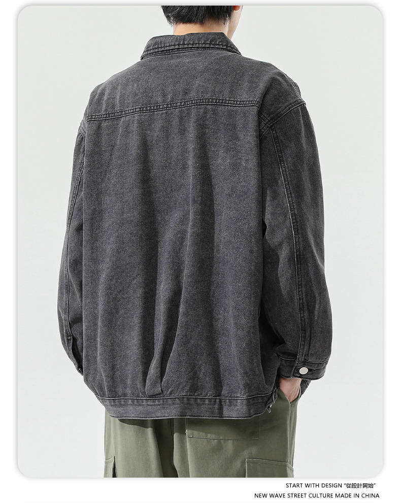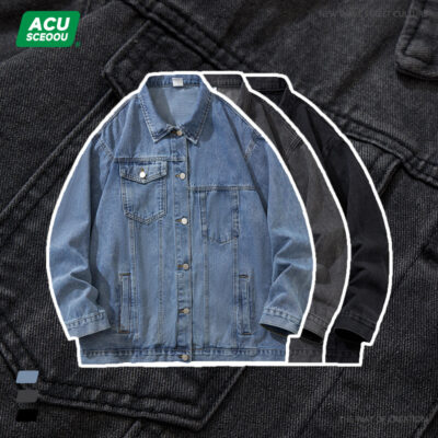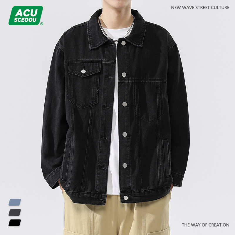 ACU Quần Áo Nam Mùa Xuân 2023 Sản Phẩm Mới Retro Đồng Màu Làm Cũ Đã Giặt Áo Khoác Denim Bảo Hộ Lao Động Áo Khoác Rộng Nam