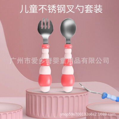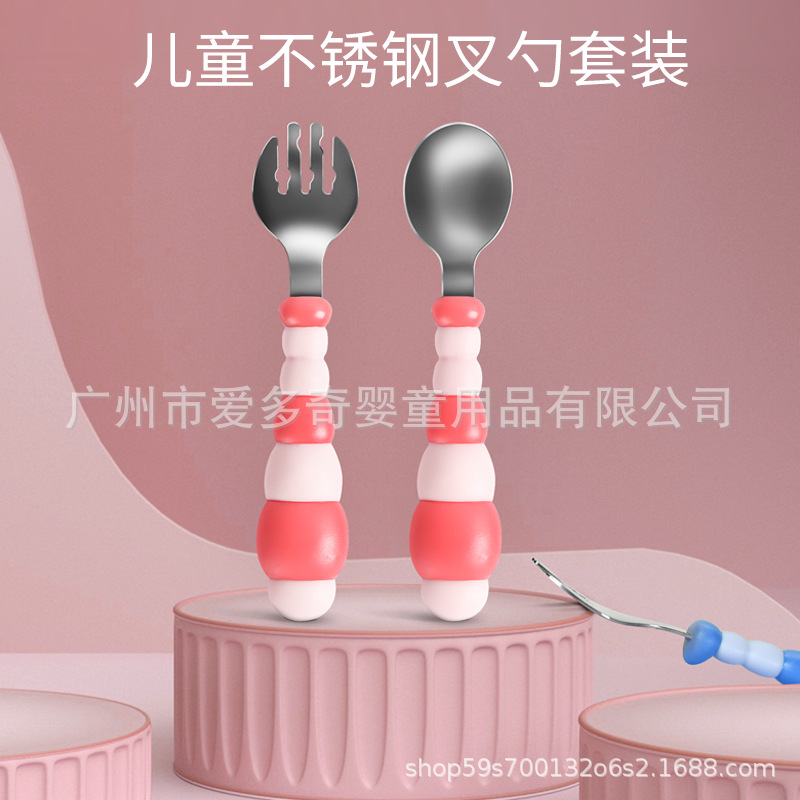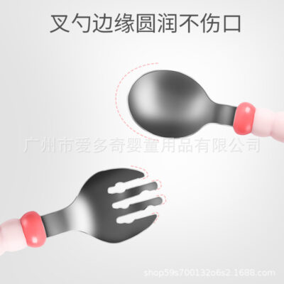 Aidoqi đầu tròn 304 muỗng nĩa trẻ em bằng thép không gỉ cho trẻ sơ sinh ăn Bộ đồ ăn muỗng nĩa di động Bộ