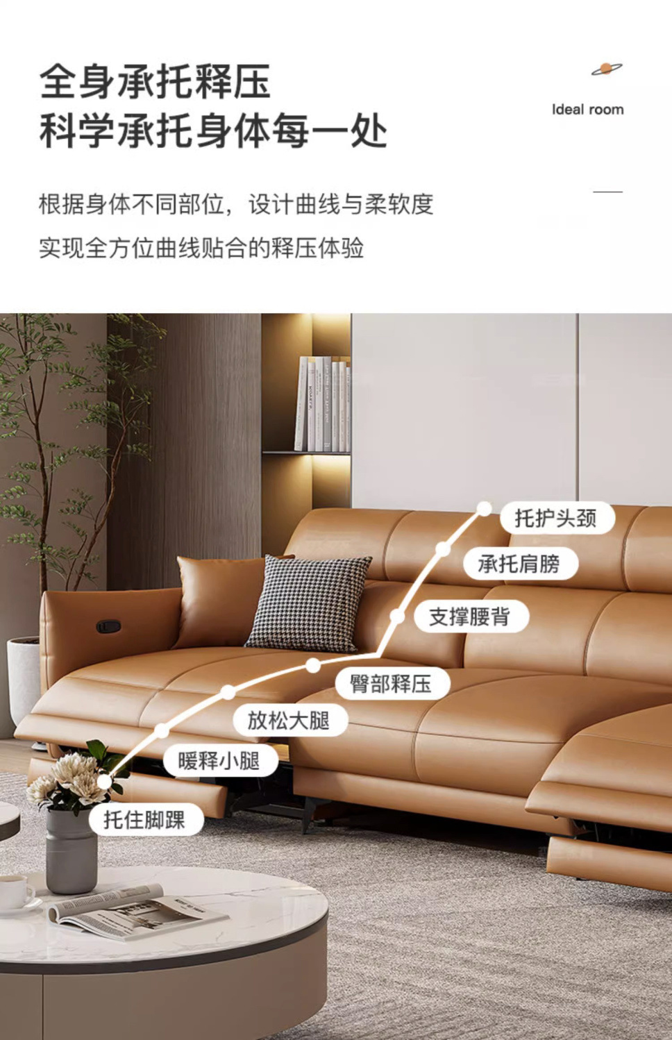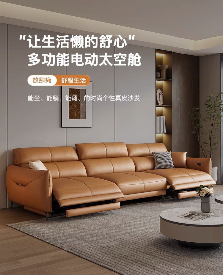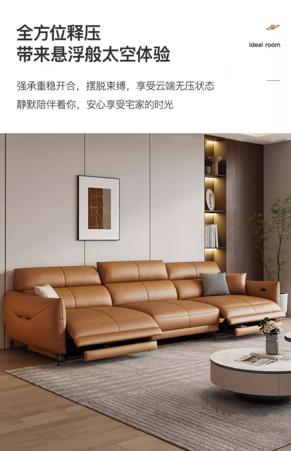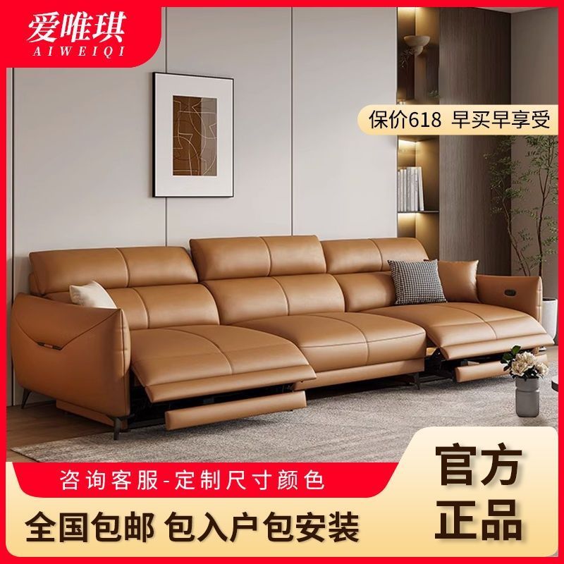 Aiweiqi Điện Chức Năng Sofa Lớp Đầu Tiên Da Bò Phòng Khách Thẳng Hàng Không Gian Hạng Nhất Ghế Sofa Da Bò Thật 3 Chỗ