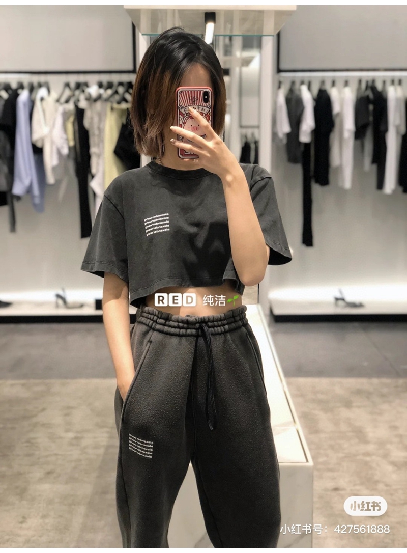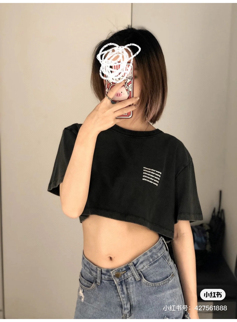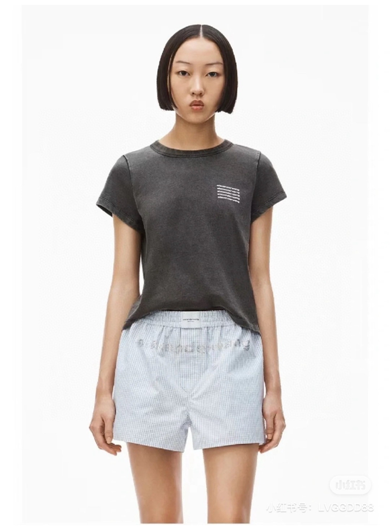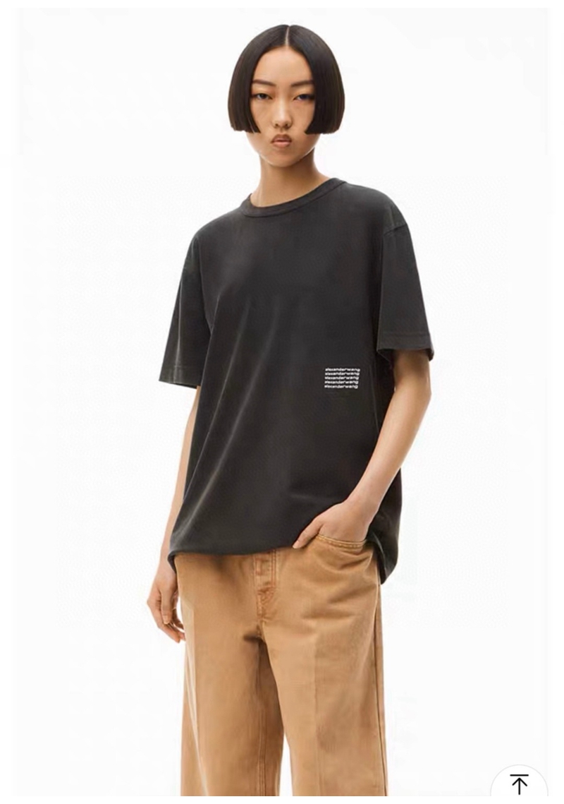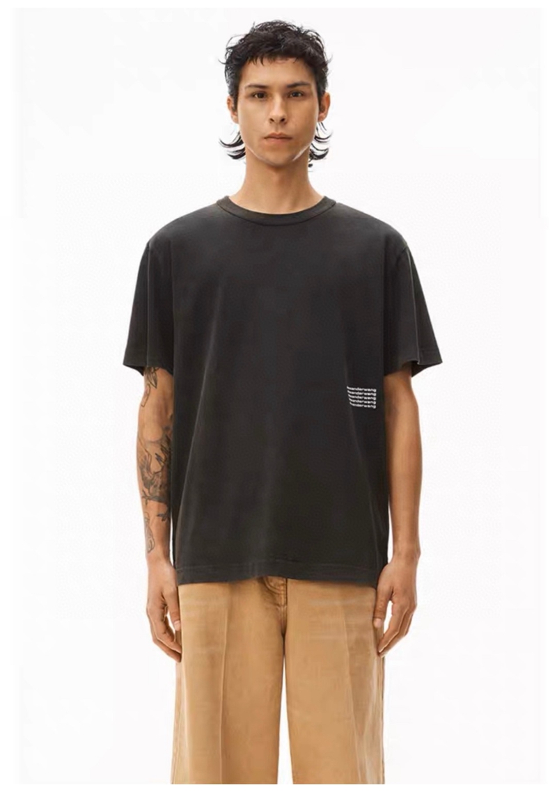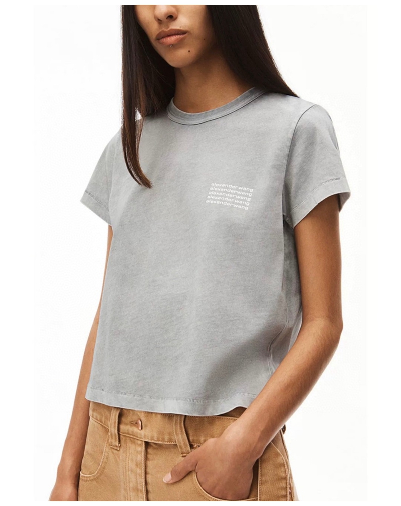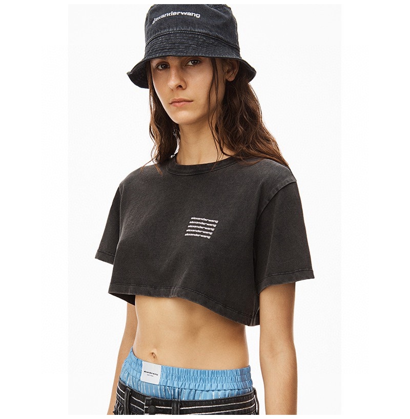 ALEXANDER WANG / Alexander Wang lặp lại mô hình logo axit giặt áo thun thu nhỏ màu đen