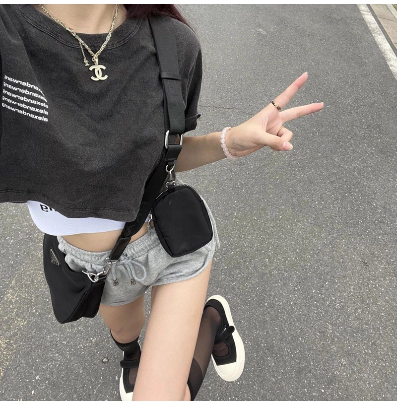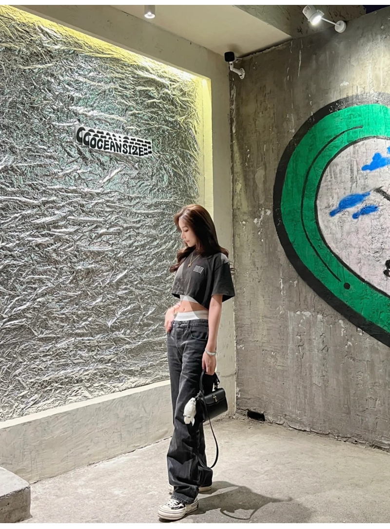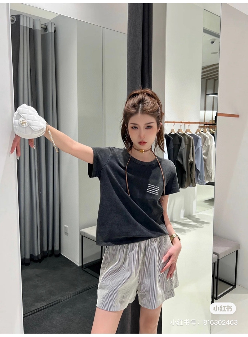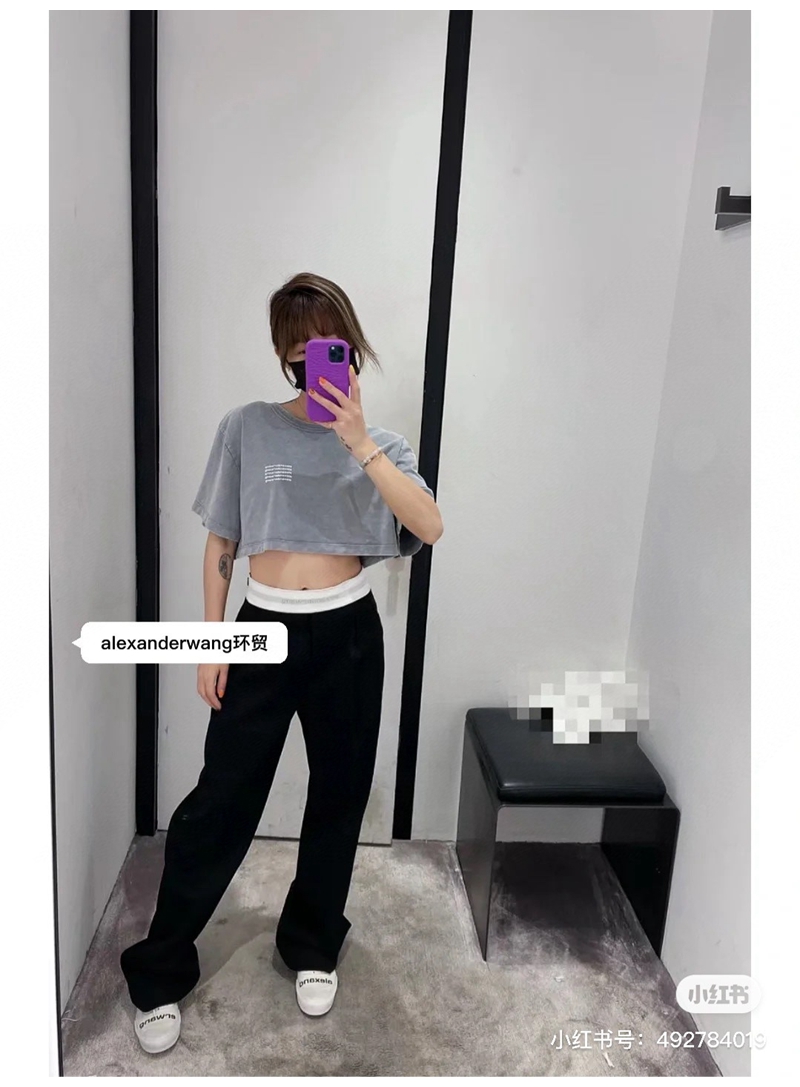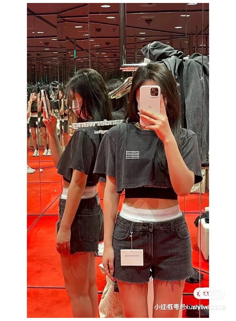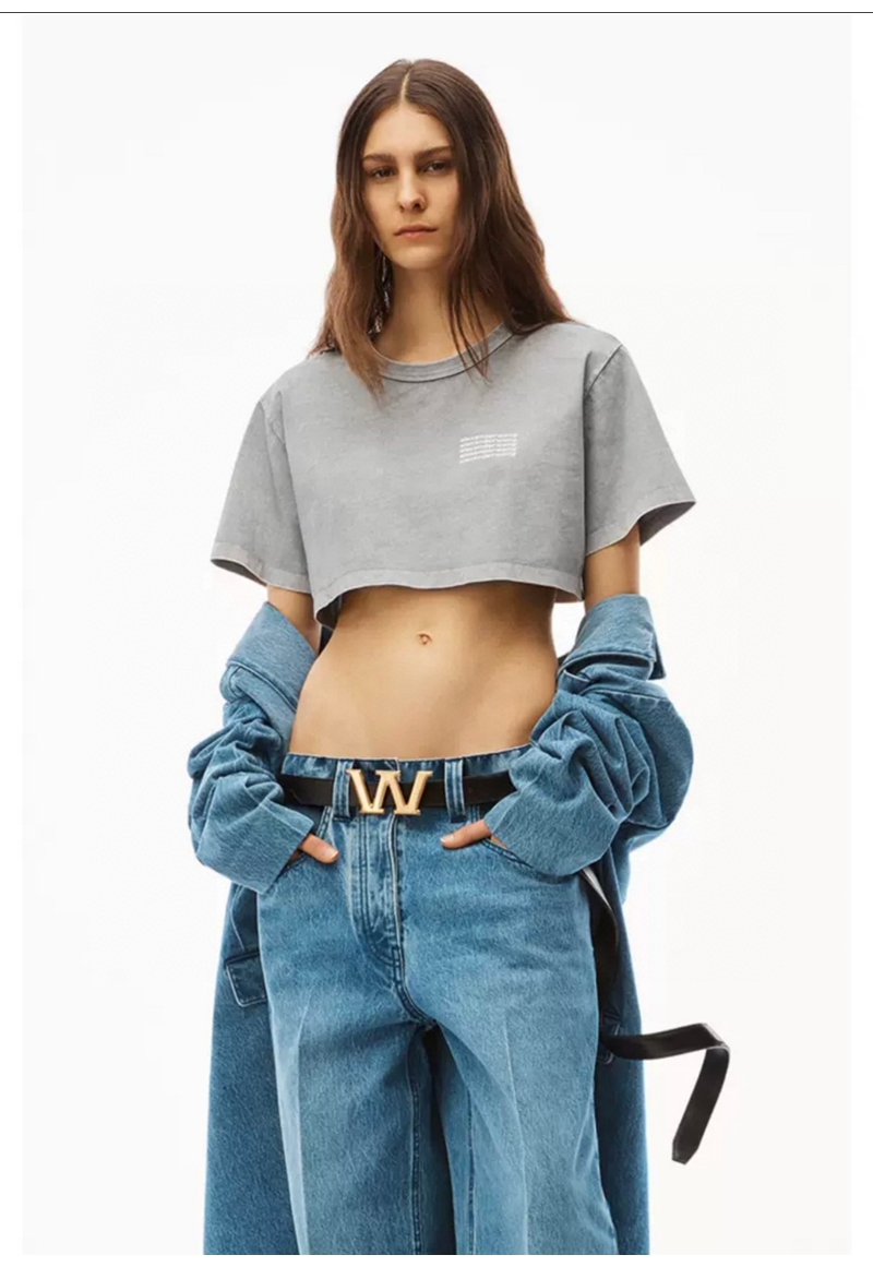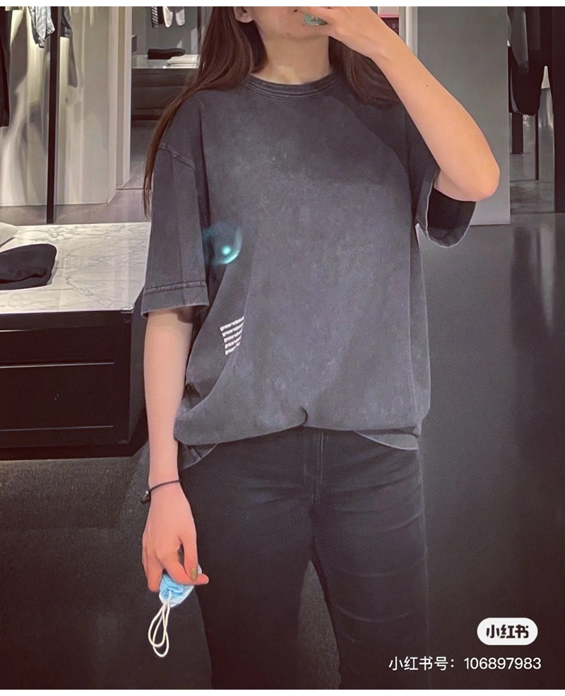 ALEXANDER WANG / Alexander Wang lặp lại mô hình logo axit giặt áo thun thu nhỏ màu đen
