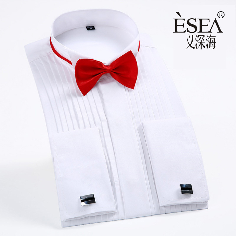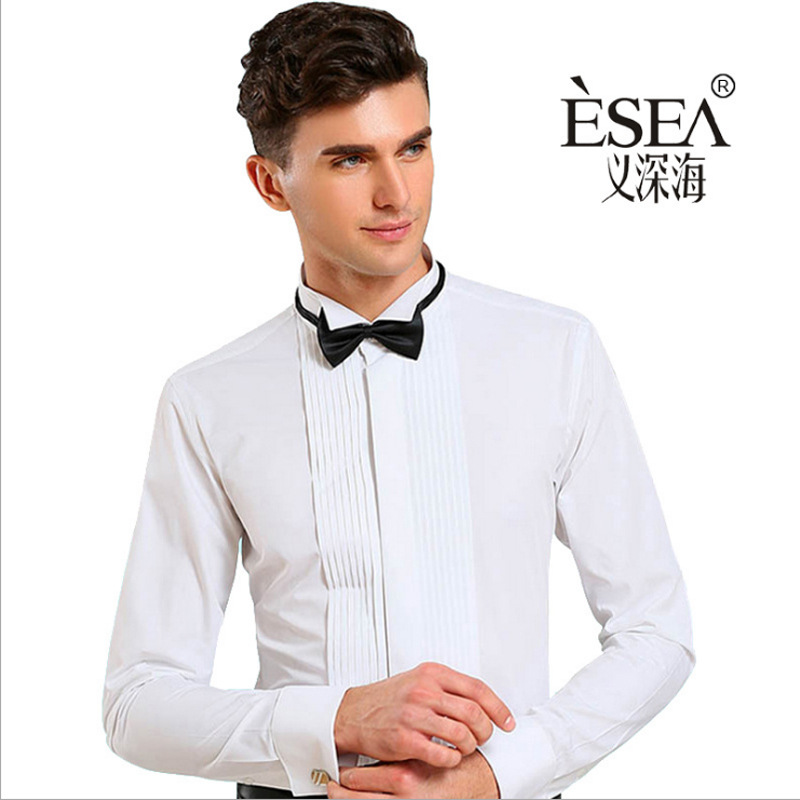 AliExpress bán chạy nhất váy cưới váy cưới studio ảnh chụp nam dài tay đồng màu áo sơ mi nuốt cổ áo sơ mi chủ nhân của các buổi lễ