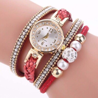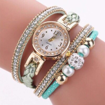 AliExpress Bán Chạy PU Vòng Tay Nữ Đồng Hồ Thời Trang Bện Kim Cương Khảm Ngọc Trai Đồng Hồ Nữ Mới Đồng Hồ Thạch Anh Bán Buôn
