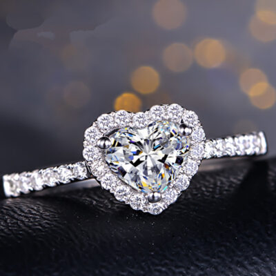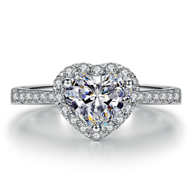 AliExpress Châu Âu và Châu Mỹ trang sức mạ bạc mô phỏng Zircon hình trái tim nhẫn nữ vi khảm đá quý nhẫn xuyên biên giới cung cấp sỉ