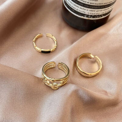 AliExpress Châu Âu và Châu Mỹ xuyên biên giới sáng tạo thời trang đơn giản tính khí nữ nhẫn sao trăng đen nhẫn kim cương 3 món