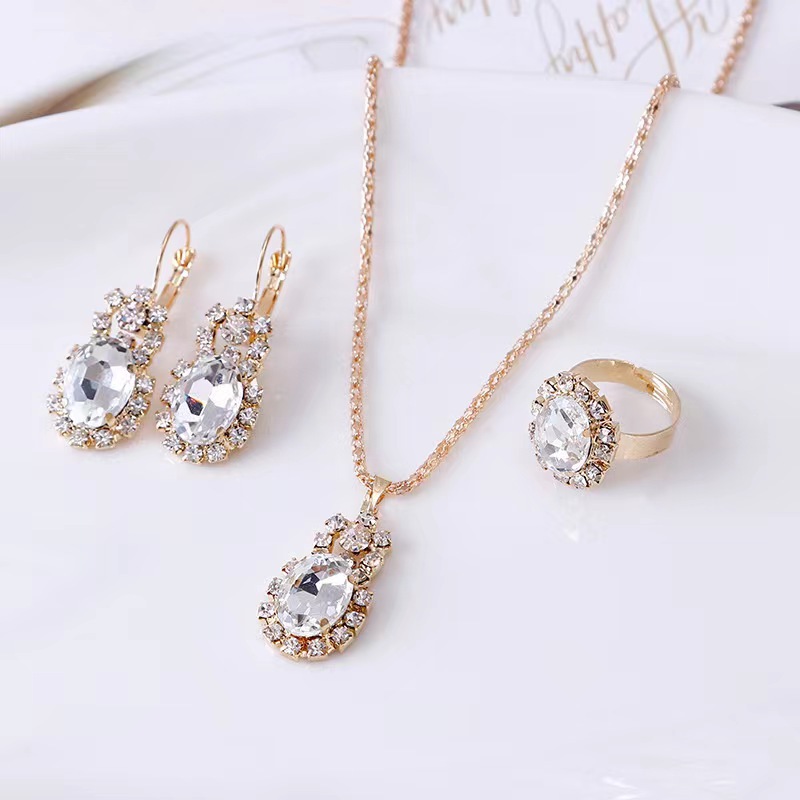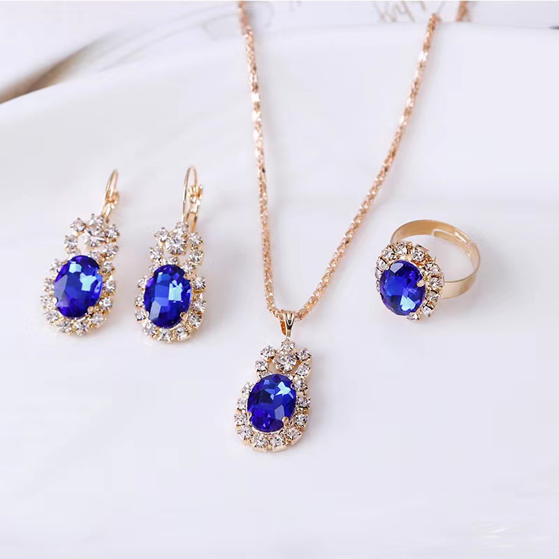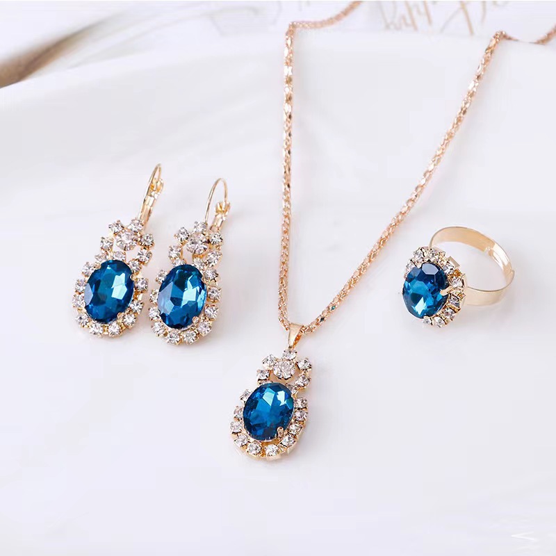 AliExpress Chúc Bán Chạy Bằng Vòng Cổ Hình Bầu Dục Đá Quý Móng Vuốt Bộ Chuỗi Pha Lê Bông Tai Vòng Sỉ Bộ 3