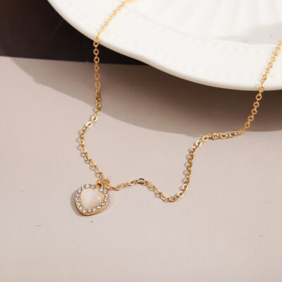 AliExpress Ins Thời Trang Tính Khí Opal Dây Chuyền Trái Tim Nữ Sáng Tạo Mới Kim Cương Giả Xương Đòn Dây Chuyền Bán Buôn