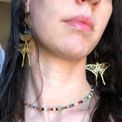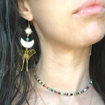 AliExpress Mặt Trăng Bướm Đêm Đá Quý Pha Lê Bằng Đồng Bông Tai Vàng Mặt Trăng Bướm Mặt Trăng Ngoại Giáo Bông Tai