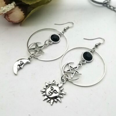 AliExpress Mặt Trăng Mặt Trời Âu Mỹ Retro Thời Trang Bohemia Đá Mặt Trăng Mặt Trời Mặt Trăng Bông Tai
