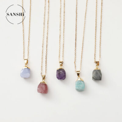 AliExpress Mặt Vòng Cổ Đá Tự Nhiên Thô Mặt Dây Chuyền Đá Thô Trang Sức Pha Lê Màu Hồng Nhỏ Birthstone Mặt Dây Chuyền